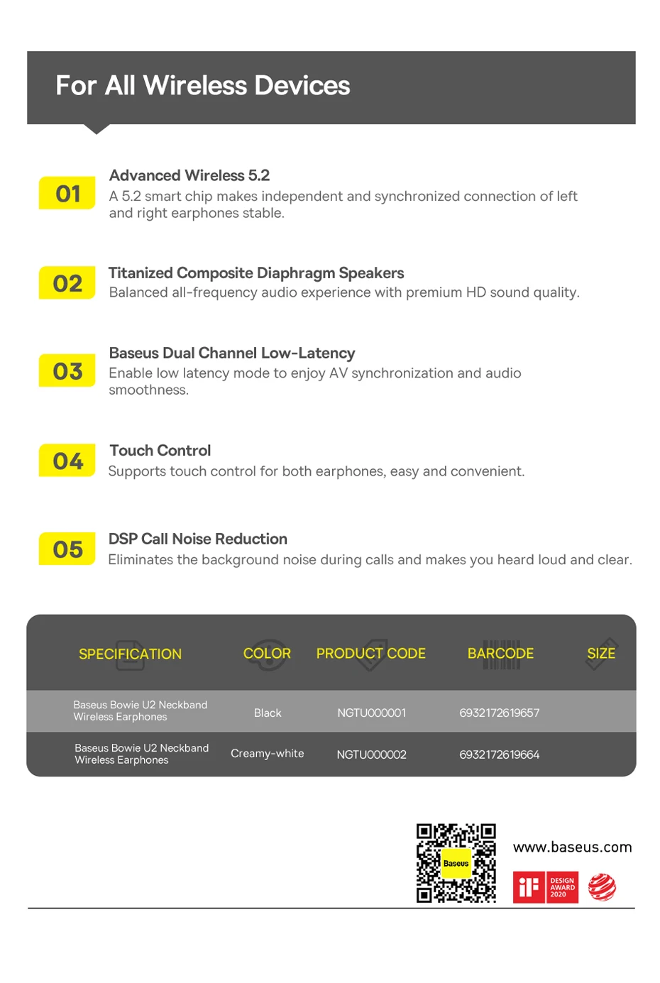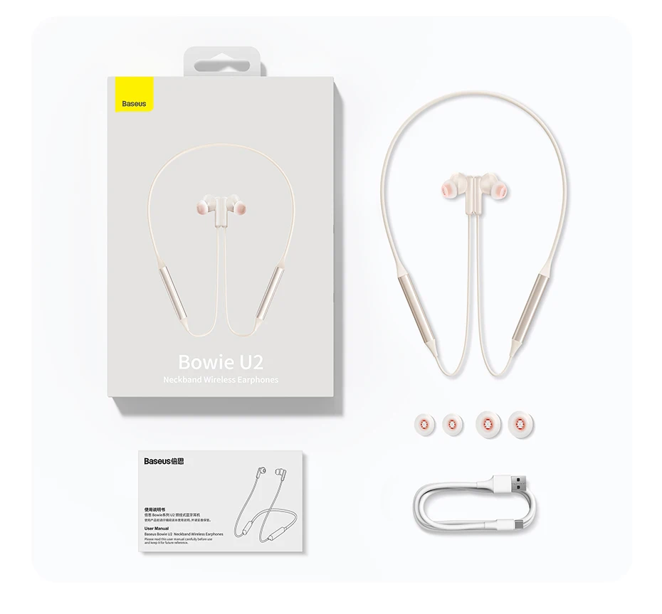 Baseus-auriculares inalámbricos U2 con banda para el cuello, dispositivo de audio con Bluetooth 5,2, ENC híbrido, con cancelación de ruido, para juegos y deportes