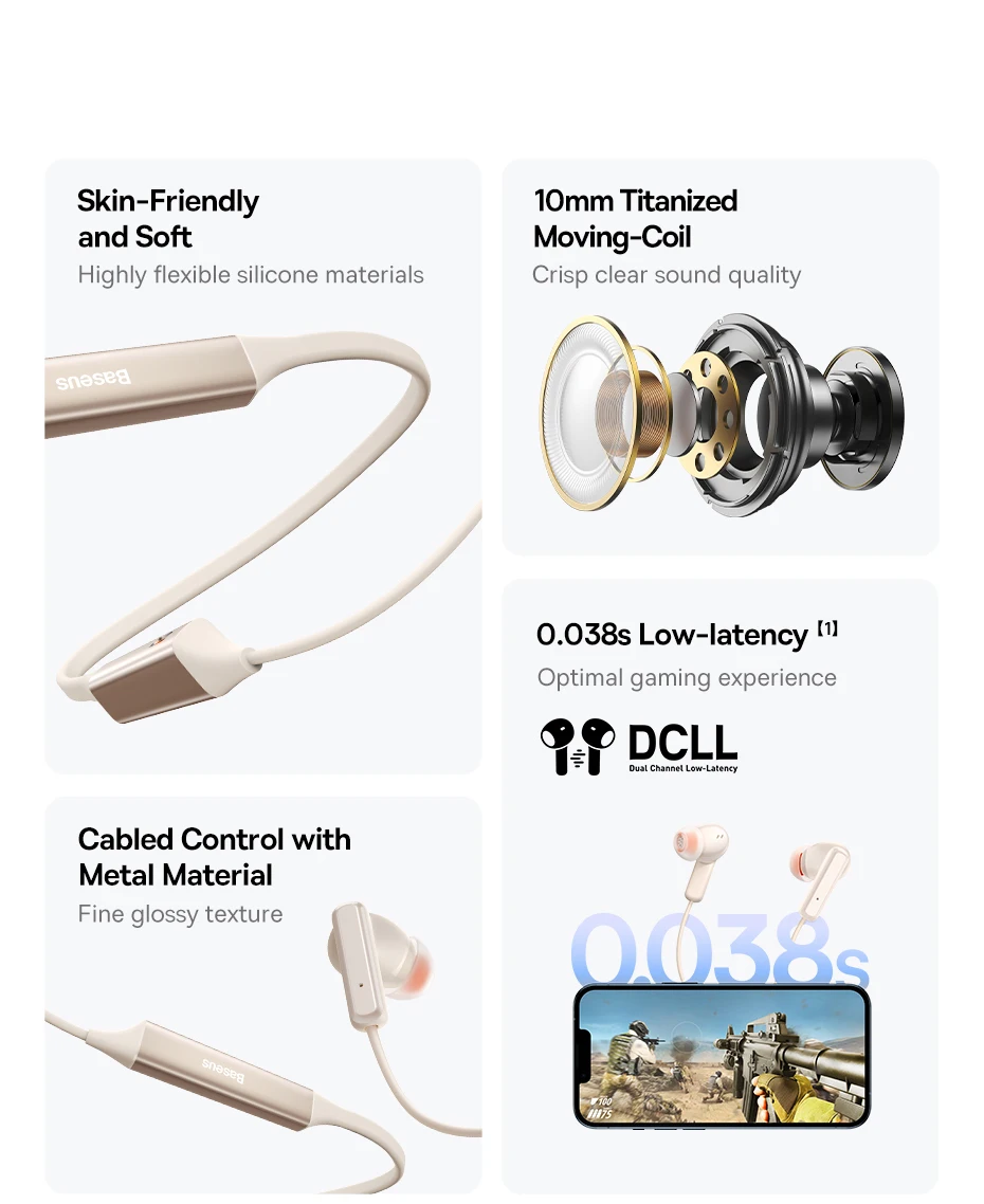 Comprar Baseus-auriculares inalámbricos U2 con banda para el cuello, dispositivo de audio con Bluetooth 5,2, ENC híbrido, con cancelación de ruido, para juegos y deportes