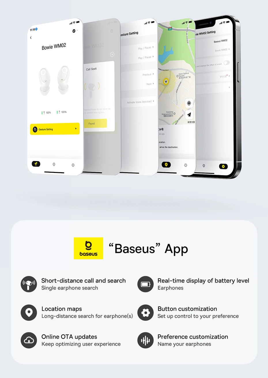 Puede localizar su auricular faltante, verificar el nivel de batería en tiempo real, personalizar las operaciones en la aplicación "Baseus", liberando todo el potencial de los auriculares