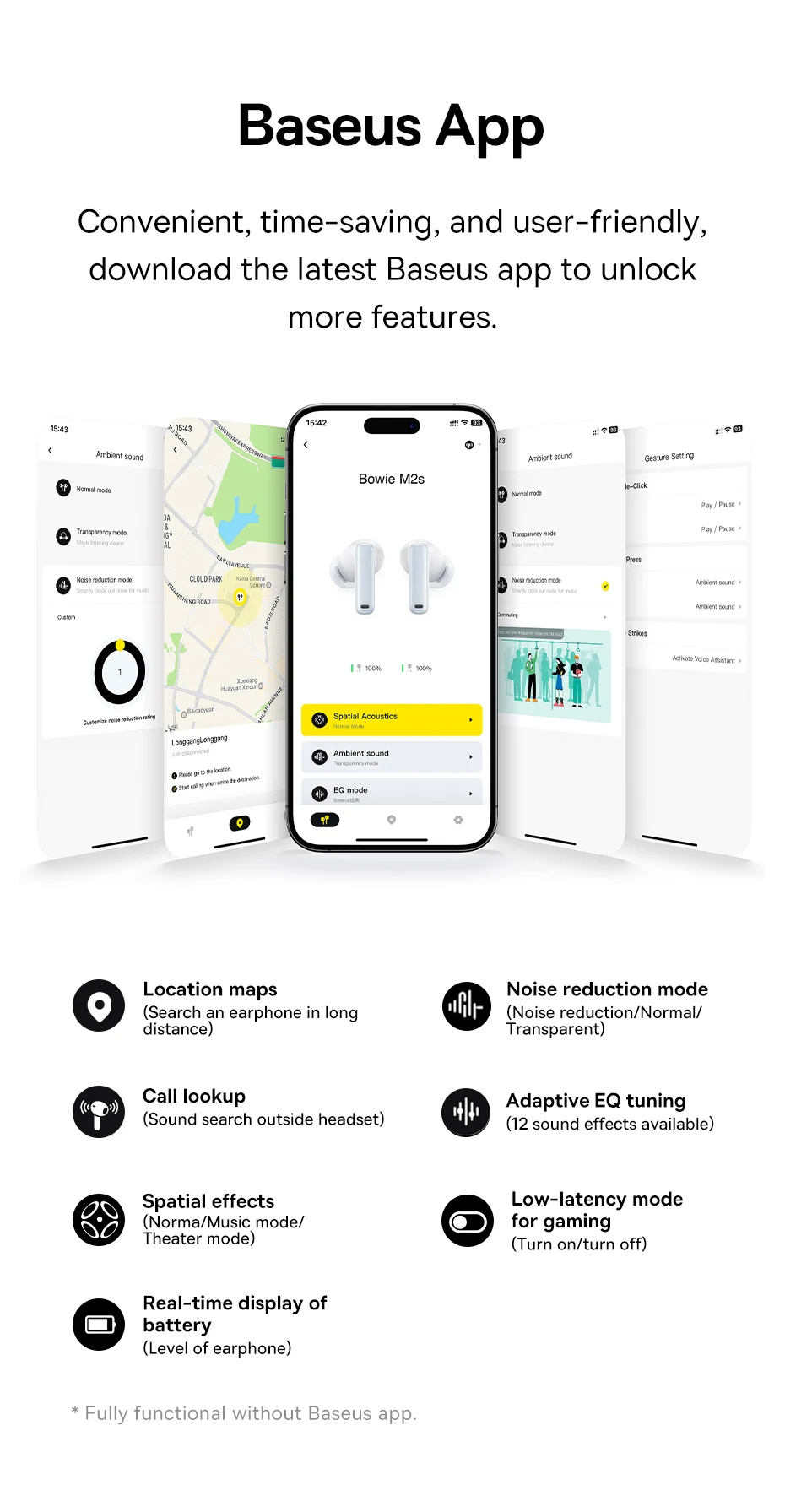 Cómodo, que ahorra tiempo y es fácil de usar, descarga la última aplicación de Baseus para desbloquear más funciones.