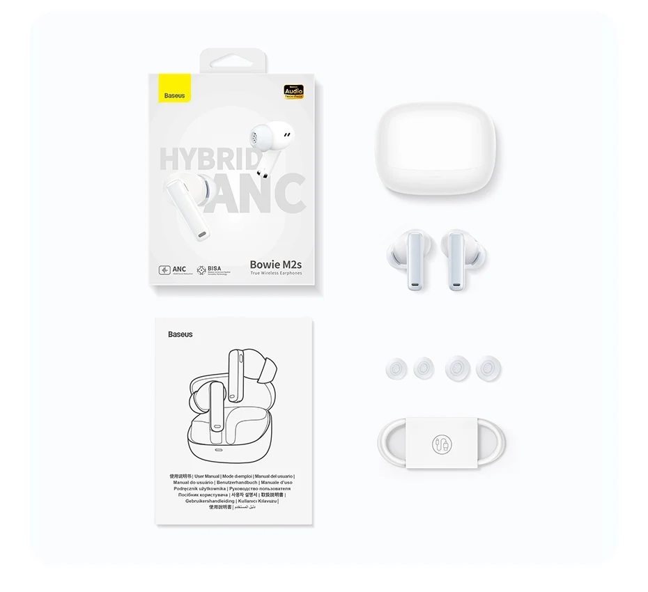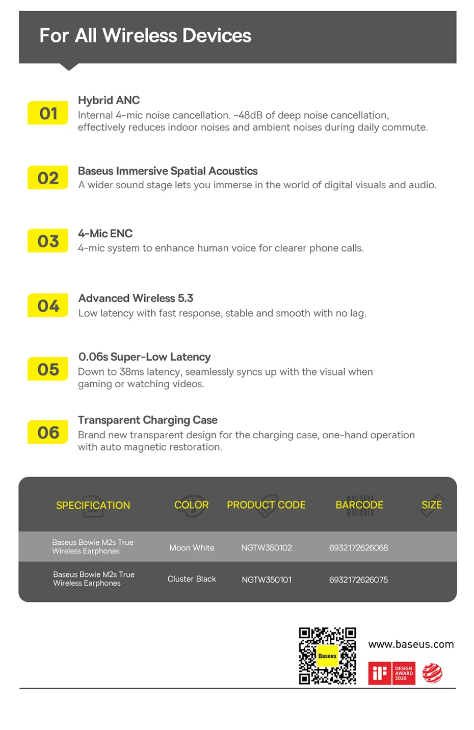 Comprar Baseus-auriculares M2s ANC con Bluetooth 5,3, dispositivo de audio con cancelación activa de ruido, 48dB, 4 micrófonos, ENC, baja latencia