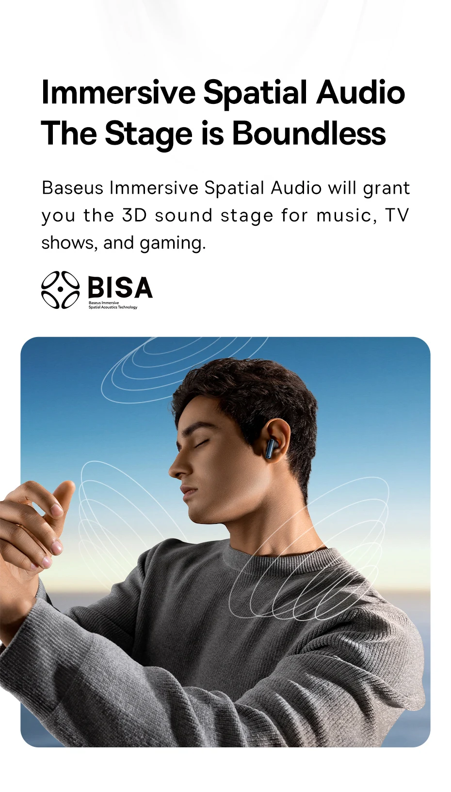 El audio espacial inmersivo de Baseus le otorgará el escenario de sonido 3D para música, programas de televisión y juegos.