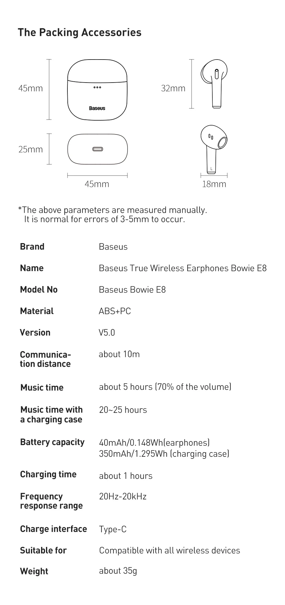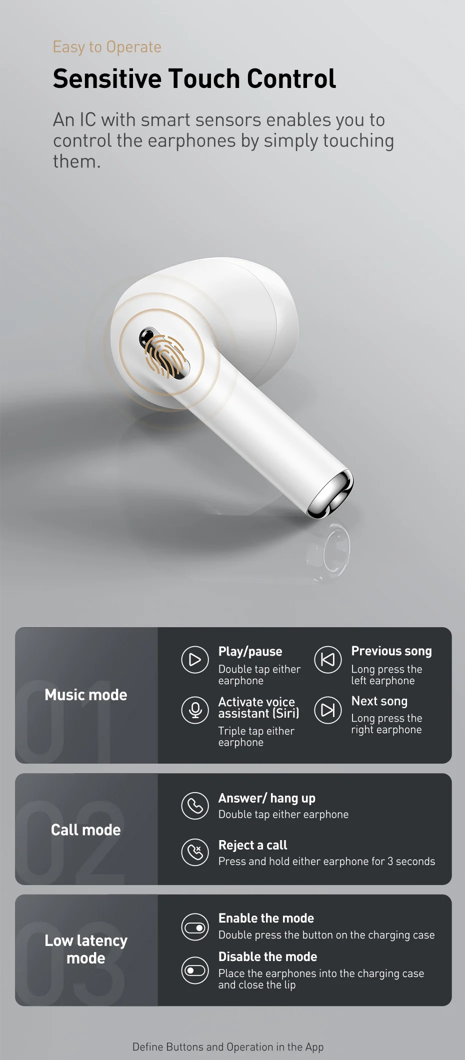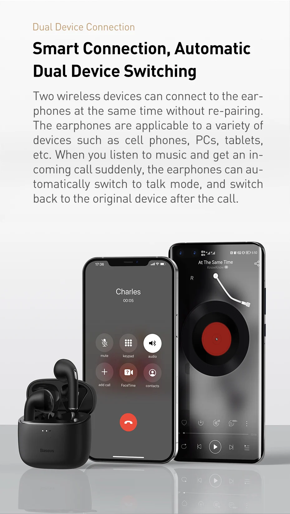 Comprar Baseus-Auriculares TWS inalámbricos con Bluetooth 5,0, dispositivo de audio estéreo HD, parlante, para iPhone 12, 13 pro, Huawei