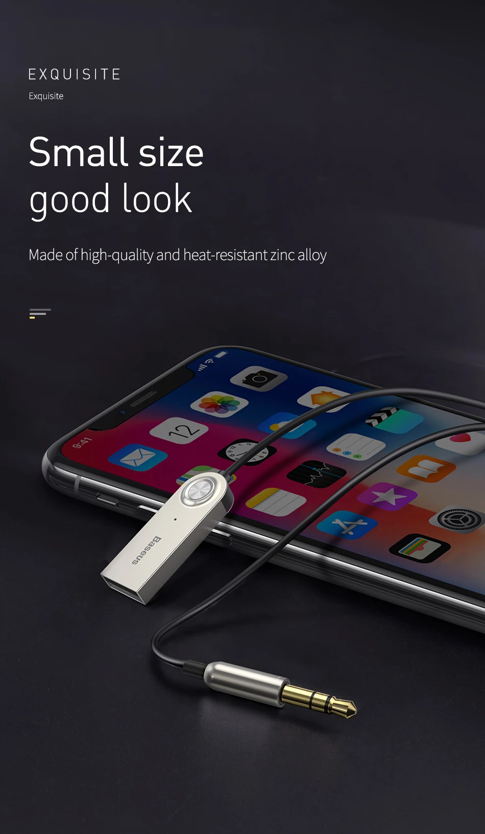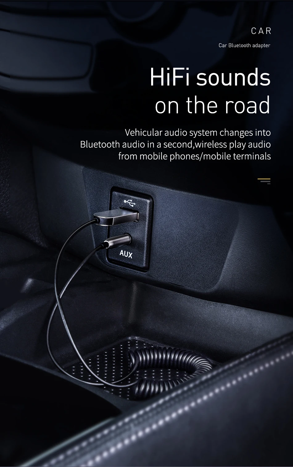 Baseus BA01 Aux Adaptador Bluetooth en el coche Receptor Bluetooth Dongle USB a conector de 3,5 mm Audio inalámbrico Música Kit manos libres para automóvil