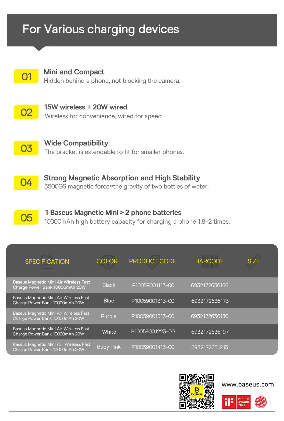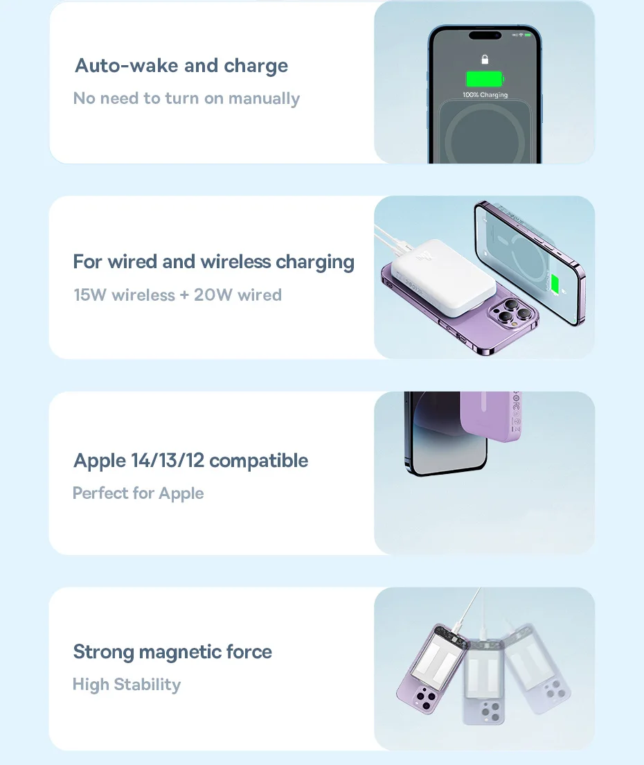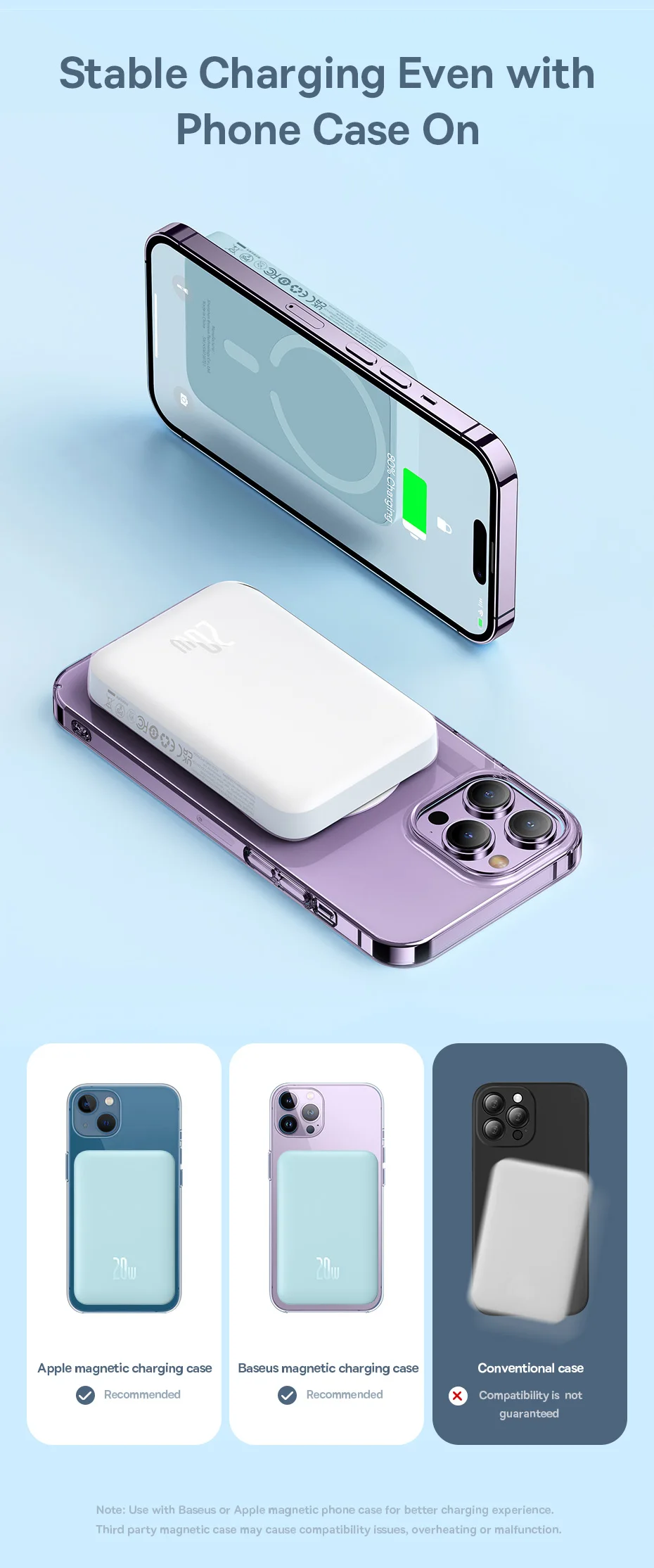 Comprar Baseus-Banco de energía magnético para iPhone, batería portátil de carga rápida inalámbrica, 10000 mAh, PD, 20W, 15, 14 Pro Max