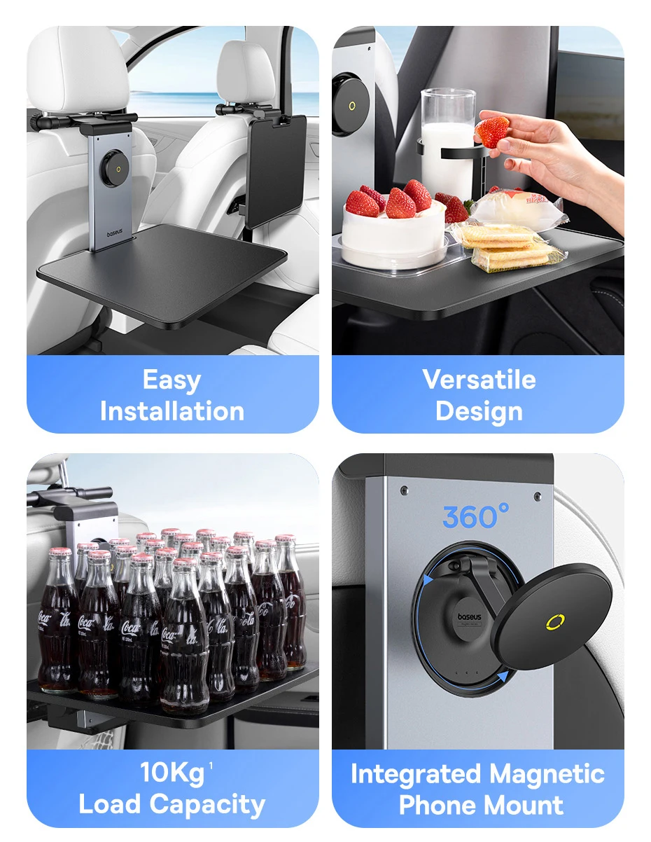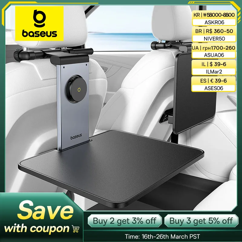 Comprar Baseus-bandeja plegable para asiento trasero de coche, escritorio para ordenador portátil, mesa para vehículo, soporte para reposacabezas, taza para coche, soporte para teléfono para escritura de alimentos, trabajo para niños