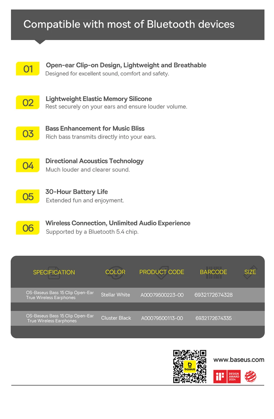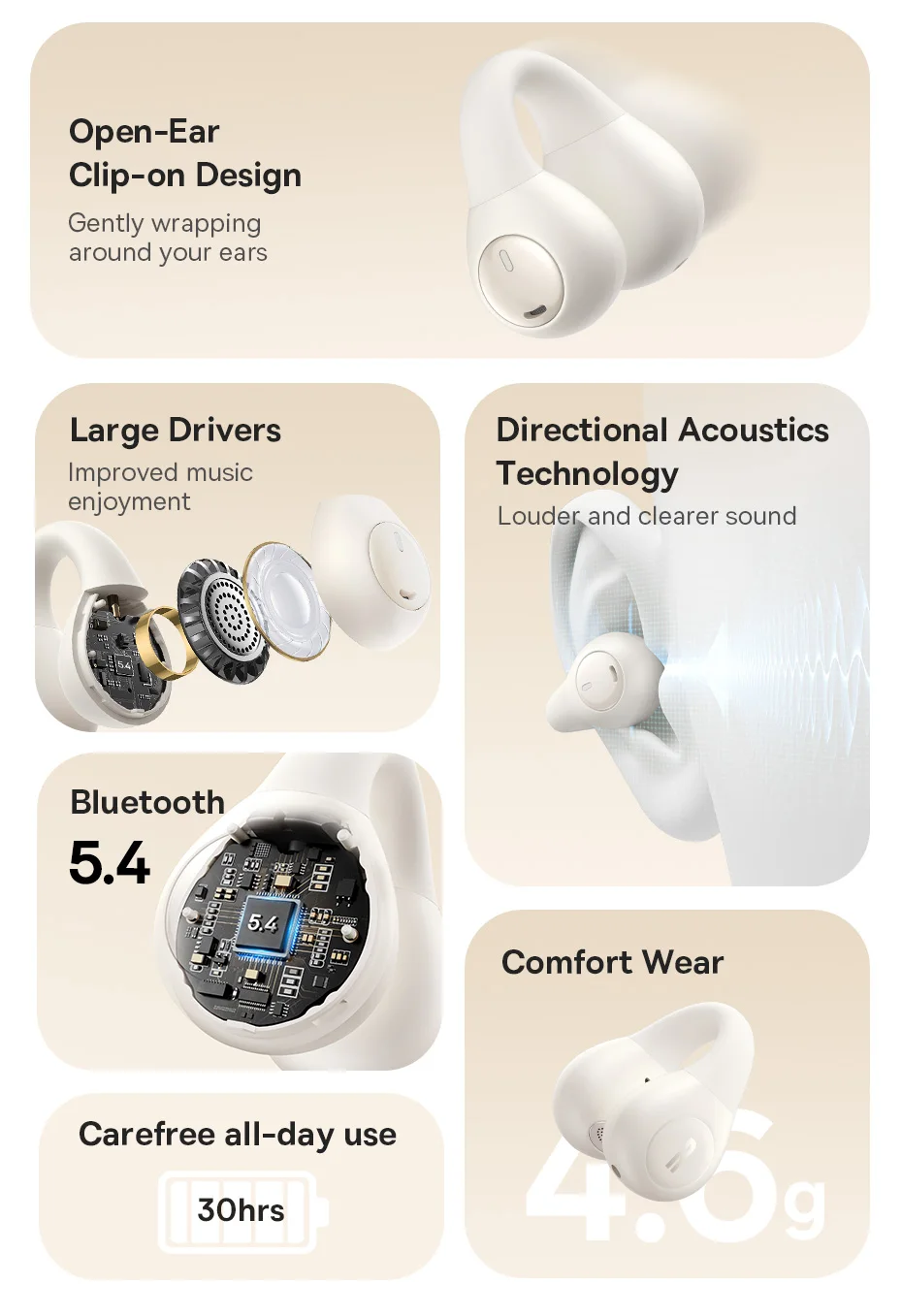 Auriculares TWS de oído abierto Baseus Bass 15 con clip