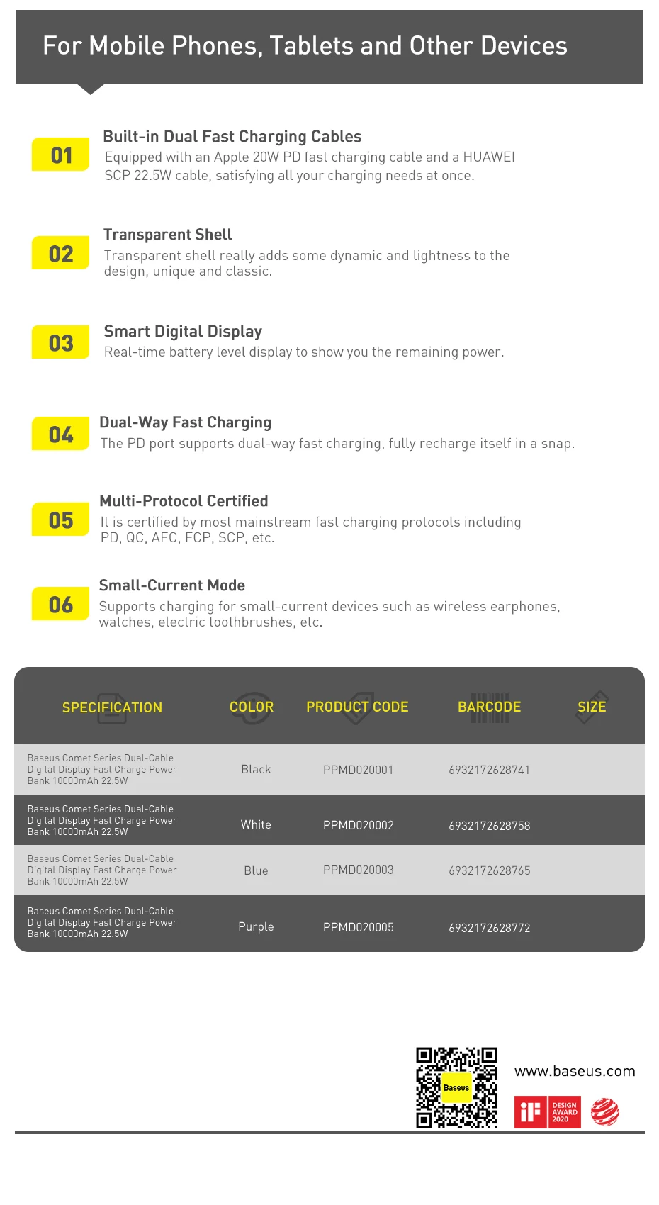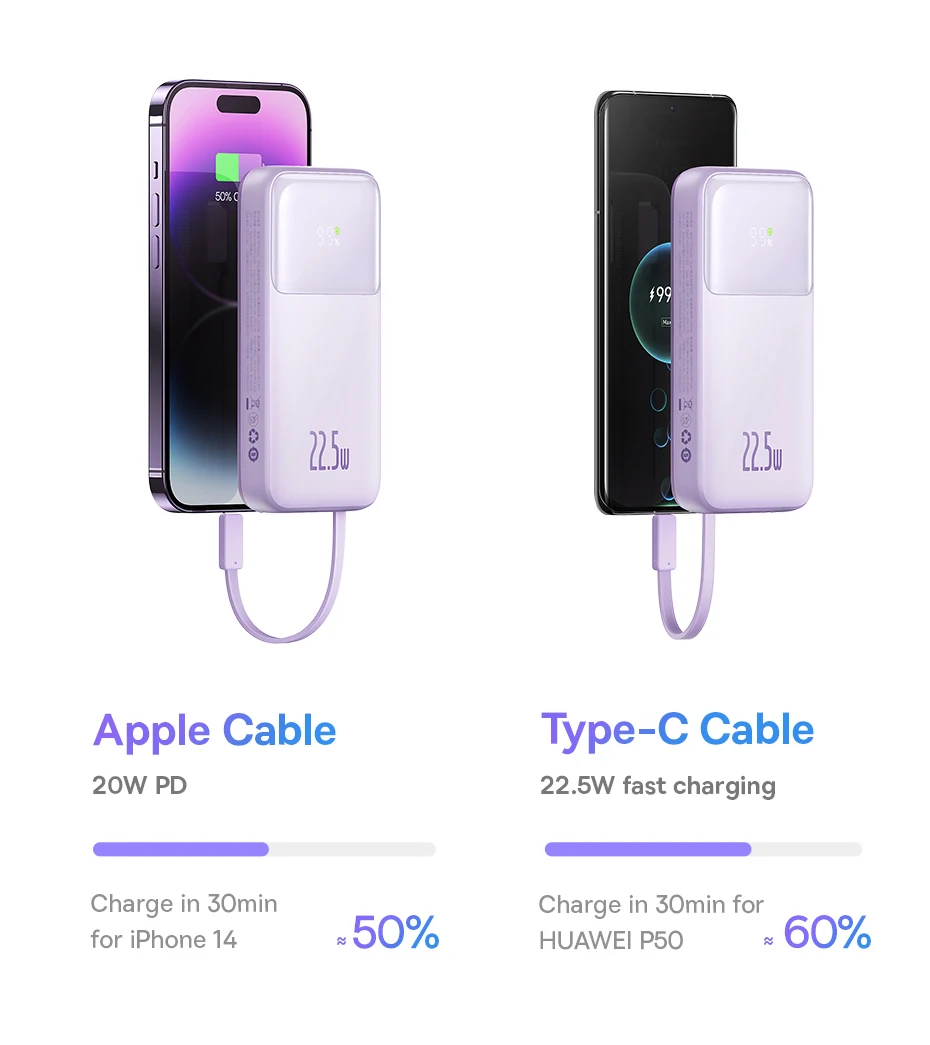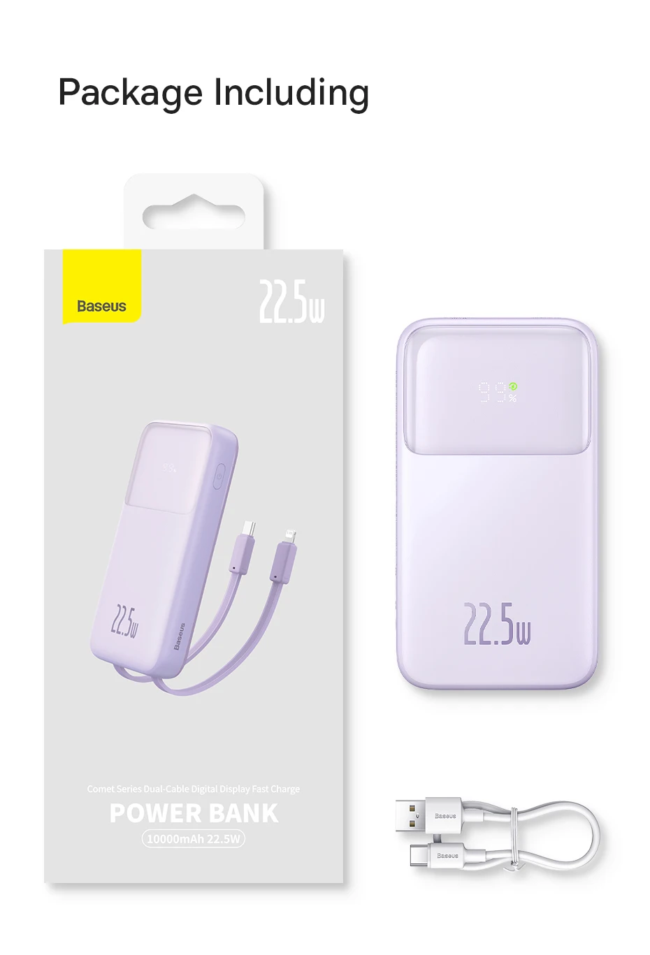 Comprar Baseus-Batería Externa de 22,5 W y 10000mAh, minicargador con Cable integrado para iPhone 13, 14, Xiaomi, Samsung y Huawei