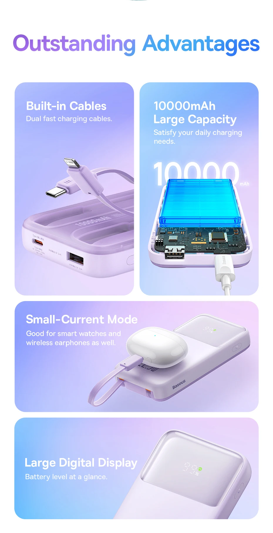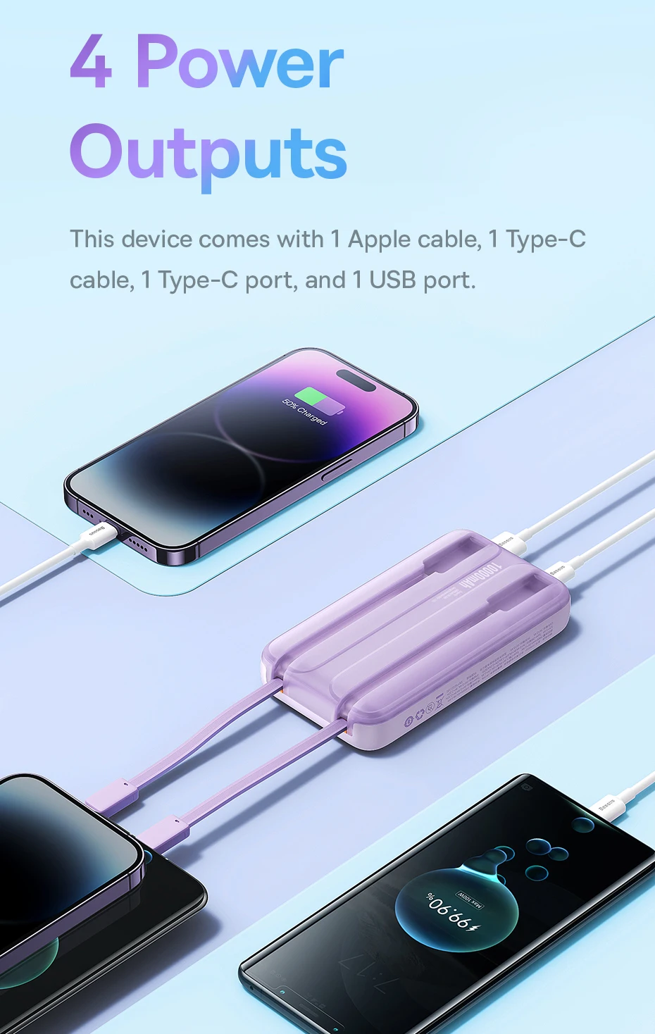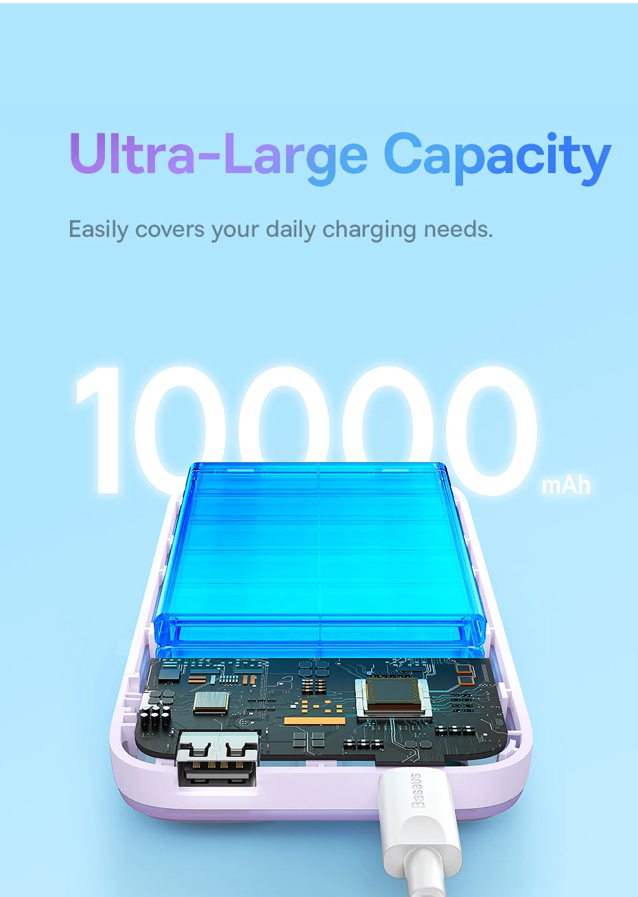 10000mAh de gran capacidad para satisfacer sus necesidades diarias de carga.