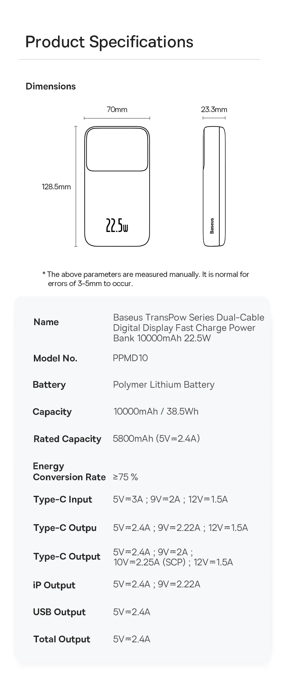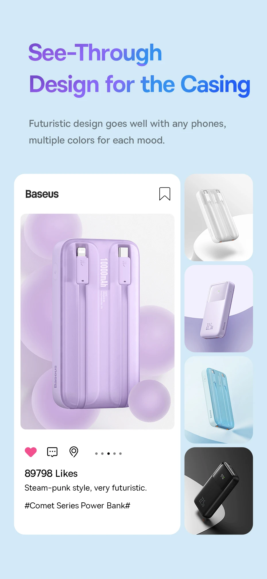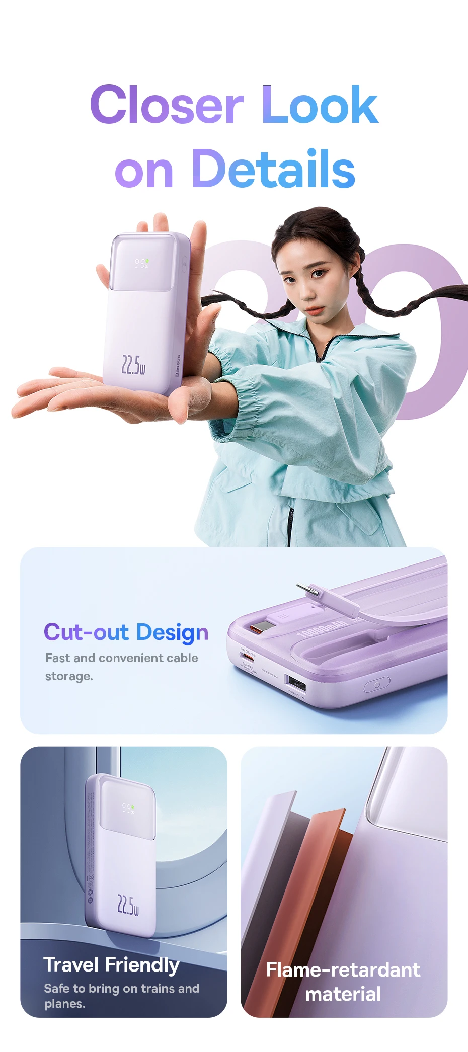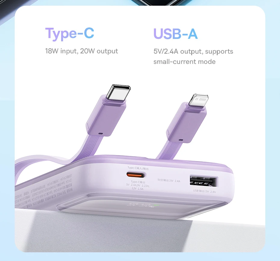 10000mAh de gran capacidad para satisfacer sus necesidades diarias de carga.