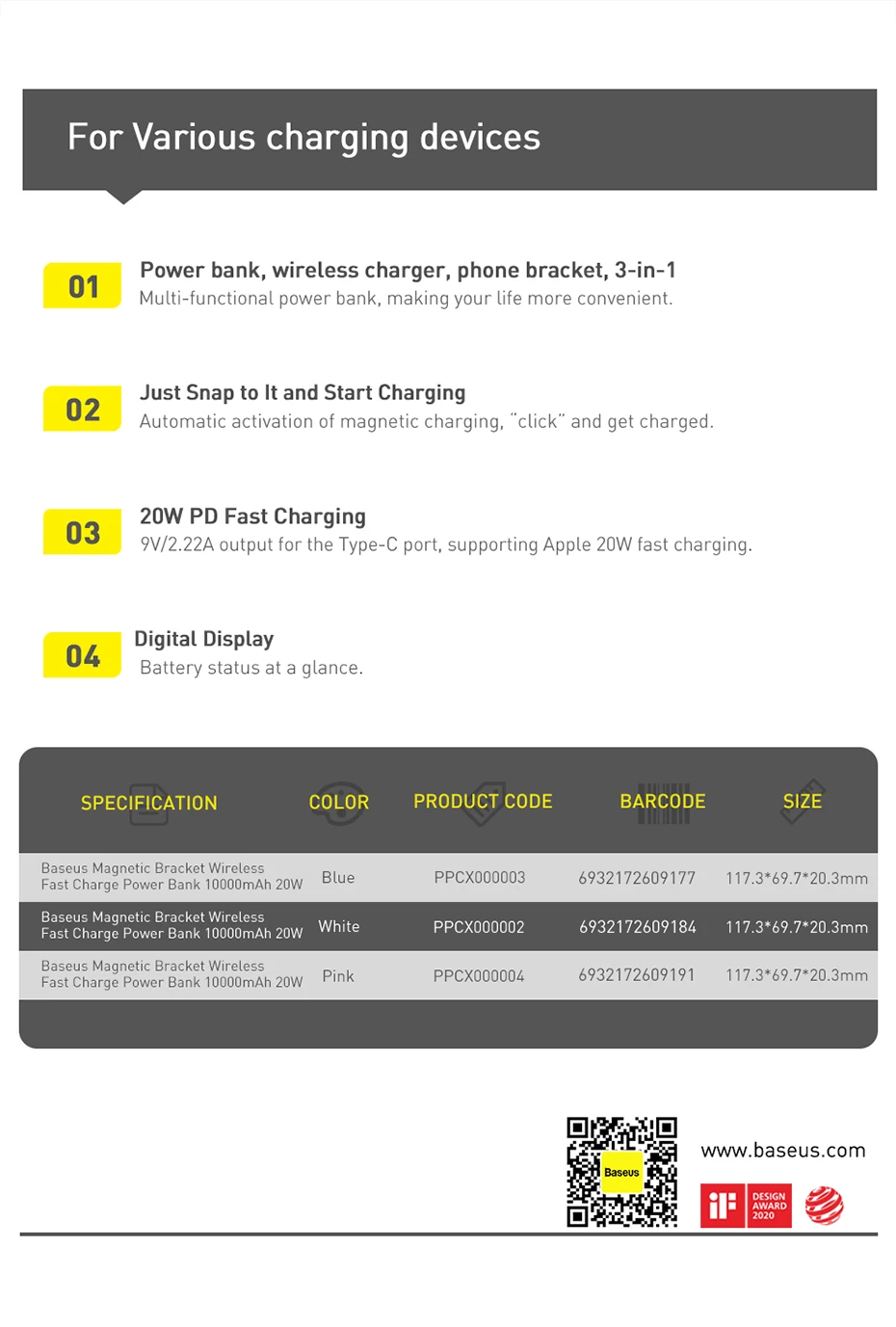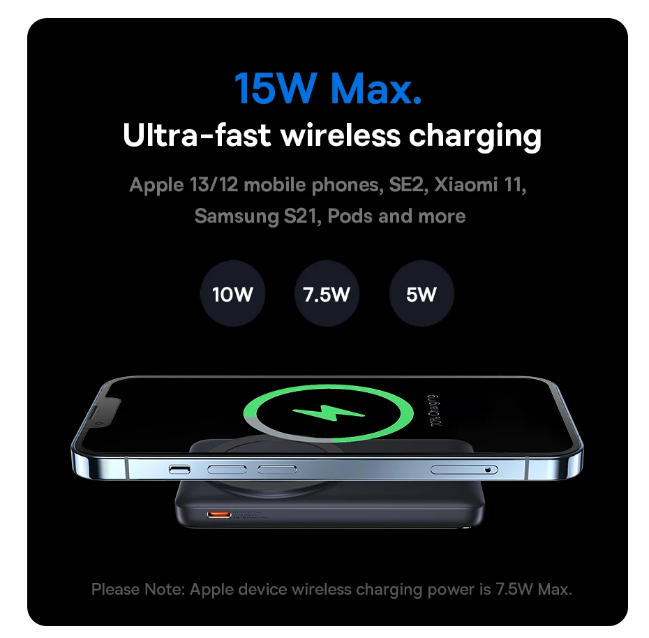 Comprar Baseus-Batería Externa magnética inalámbrica, soporte de teléfono para iPhone 14 13 12 Pro mini, 10000mAh, 15W