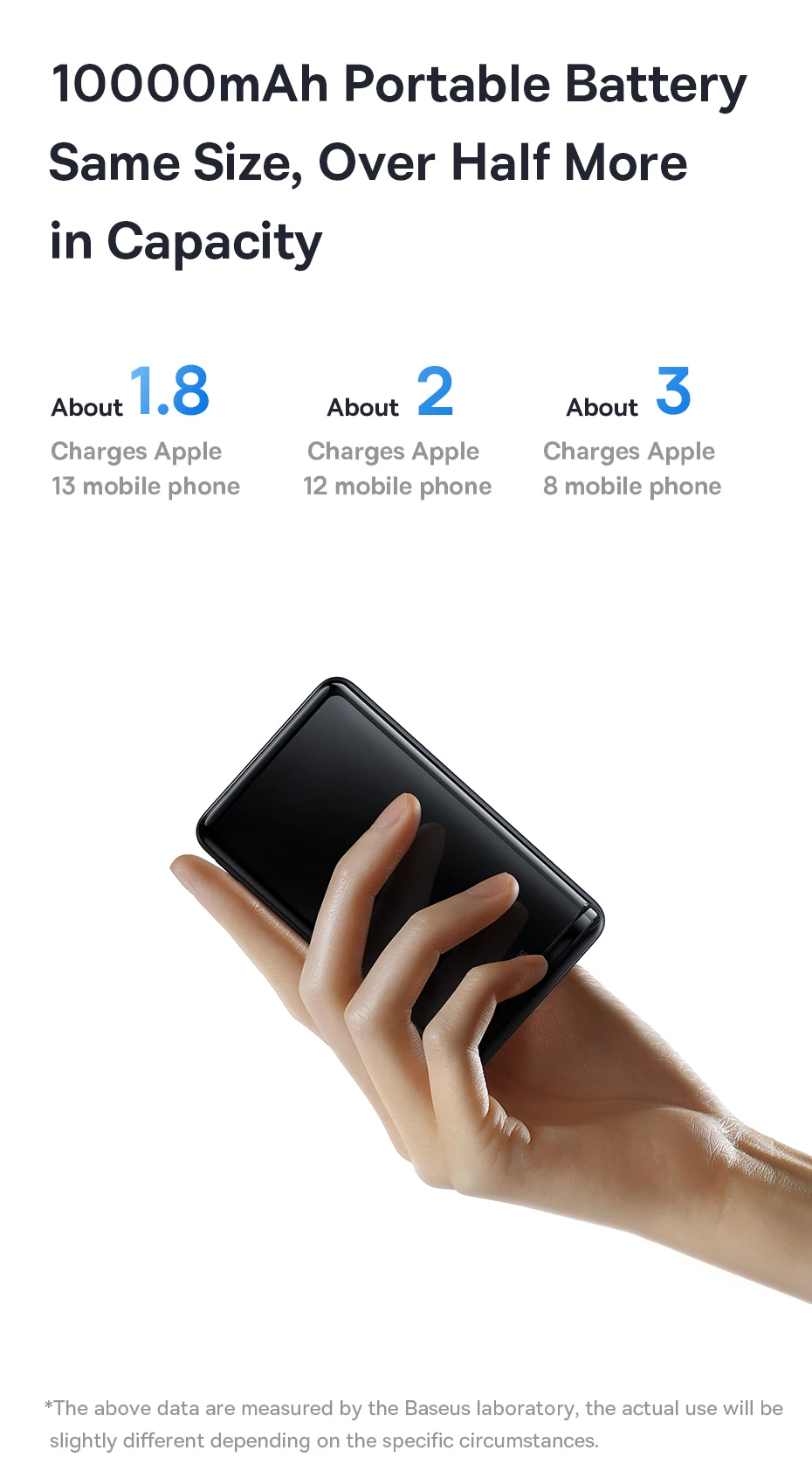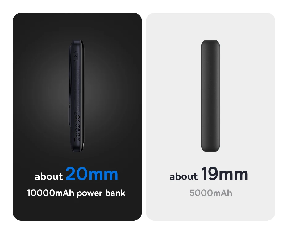 Batería portátil de 10000mAh del mismo tamaño, más de la mitad de capacidad