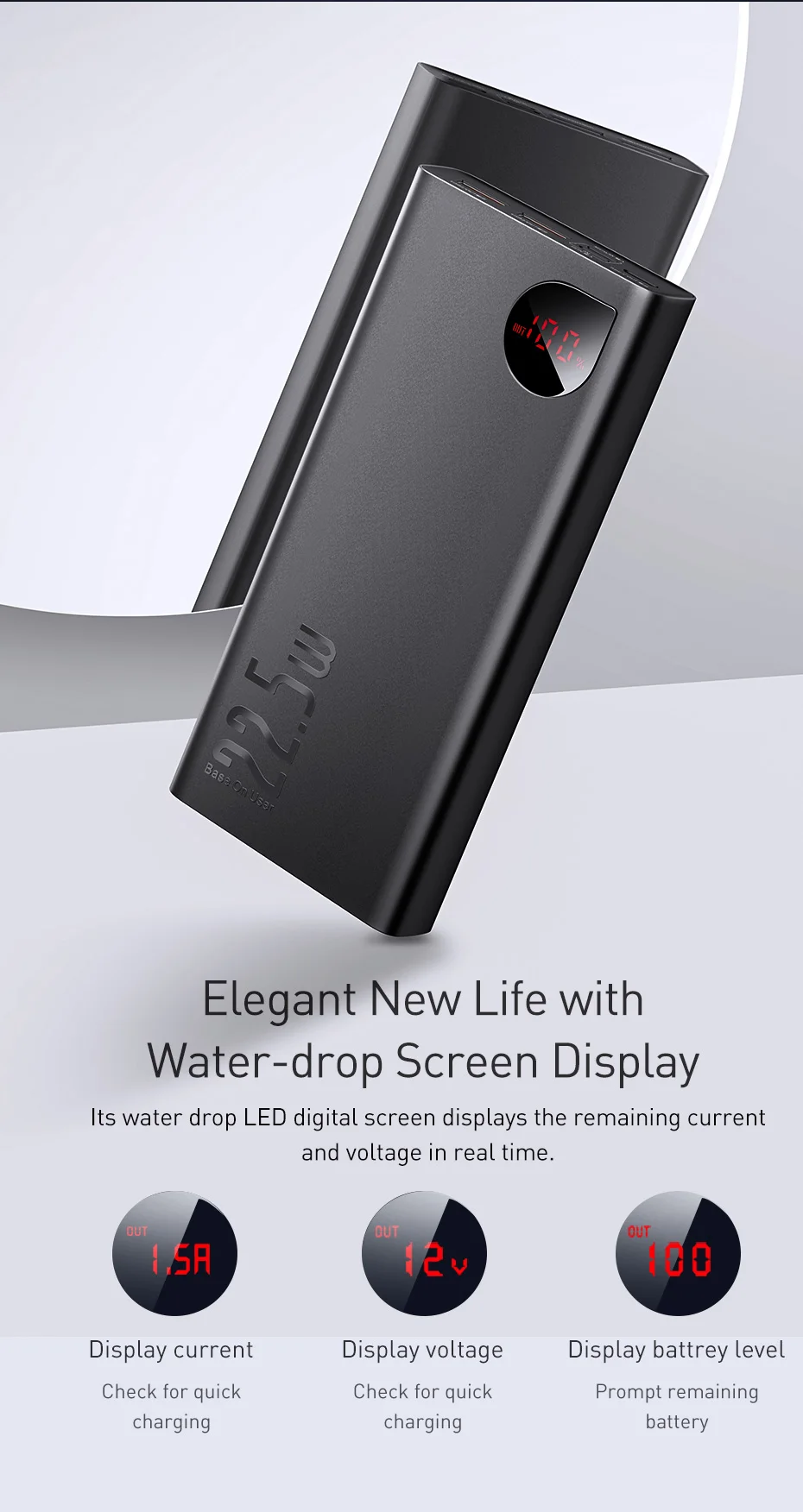 Su pantalla digital LED de gota de agua muestra la corriente y el voltaje restantes en tiempo real.