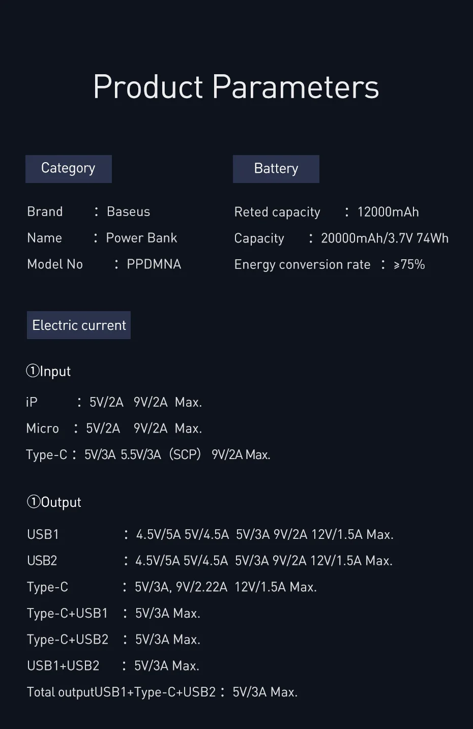 Es compatible con PD3.0 + QC3.0 carga rápida bidireccional La autocarga también es muy rápida