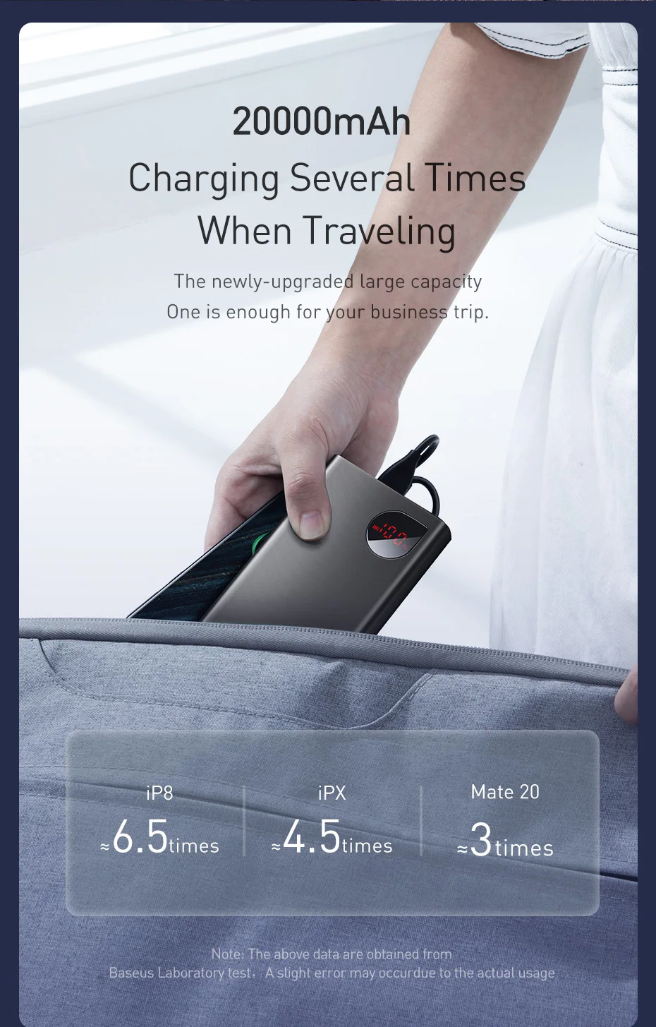 Comprar Baseus-batería externa portátil de 20000mAh, Powerbank de carga rápida, PD, 10000 W, para iPhone, Xiaomi Mi