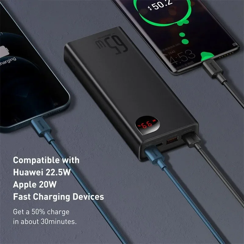 Comprar Baseus-batería externa portátil de 65W y 20000mah, Powerbank para Samsung, iPhone 12, 13, 14, 15 pro max, 20000mAh