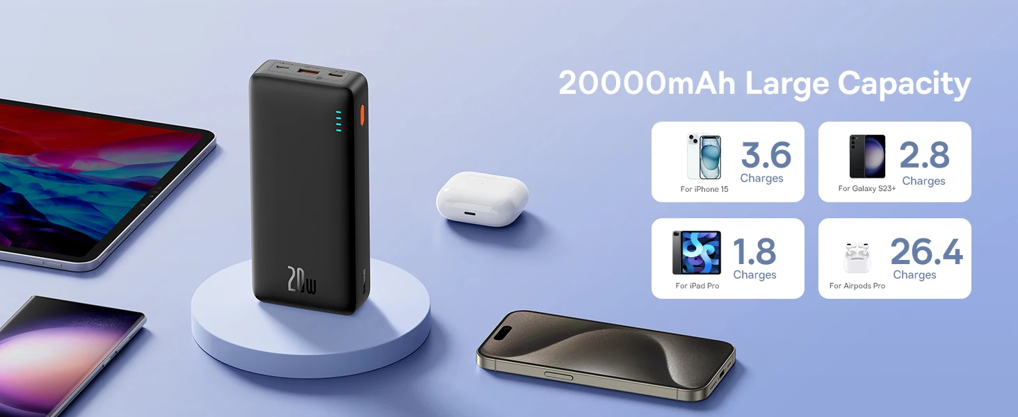 Comprar Baseus-batería externa portátil Airpow, Banco de energía de carga rápida de 20W, 10000mAh, 20000mAh, para iPhone 15, 14, 13, 12 Pro y Xiaomi