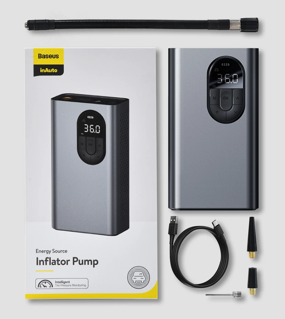 Nombre: bomba infladora de fuente de energía BaseusPeso: 610gVoltaje de entrada: 5V/ACapacidad de la batería: 6000mahEnergía nominal: 25. 9WhPotencia: 54WTiempo de carga: alrededor de 4-5hRango del manómetro:5-PSI rango de funcionamiento efectivo:Rango de detección efectivo 5-150psl;Más de 150psi puede dañar el sensor.