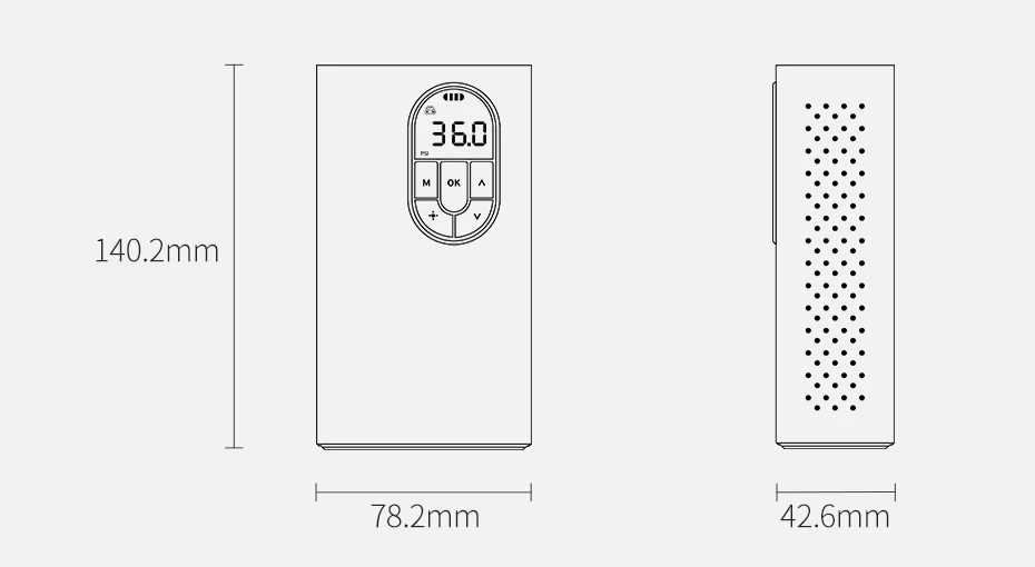 Botón MPulsación corta para encender el dispositivo y cambiar el modo. Mantenga pulsado durante 3 segundos hasta que la unidad parpadee, luego presione brevemente para alternar entre los ajustes preestablecidos de la unidad mientras parpadea.Botones "+,-"Ajusta el valor de presión de aire preestablecido y los cambios de visualización preestablecidos. Pulsación corta para aumentar o disminuir.Botón OKMantenga presionado durante 3 segundos para apagar la máquina cuando esté encendidaBotón de luzPresione brevemente una vez para encender la luz, luego presione brevemente una vez para la luz estroboscópica, luego presione brevemente una vez para la luz intermitente SOSCilindro presurizado de Metal completoGran potencia y funcionamiento estable