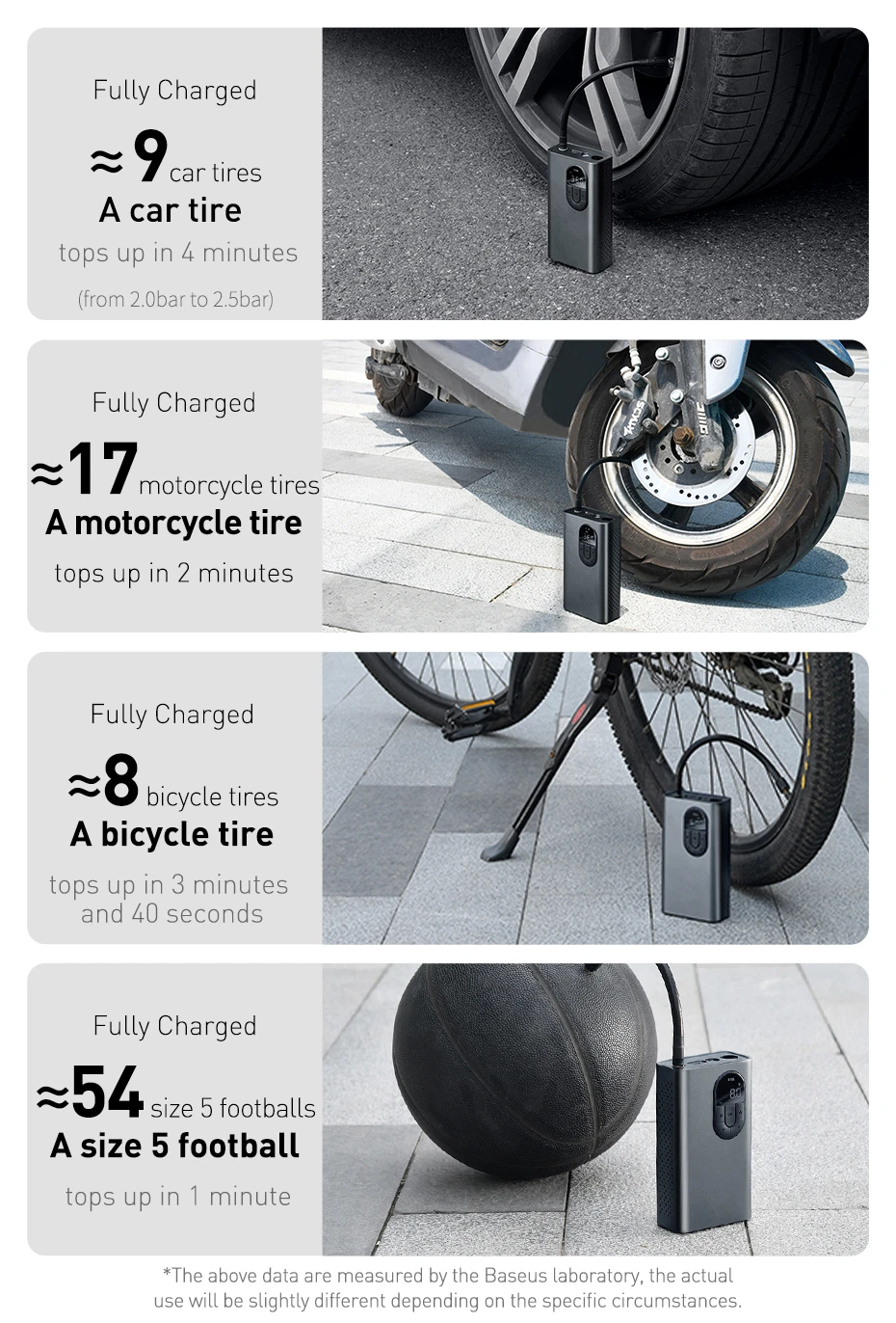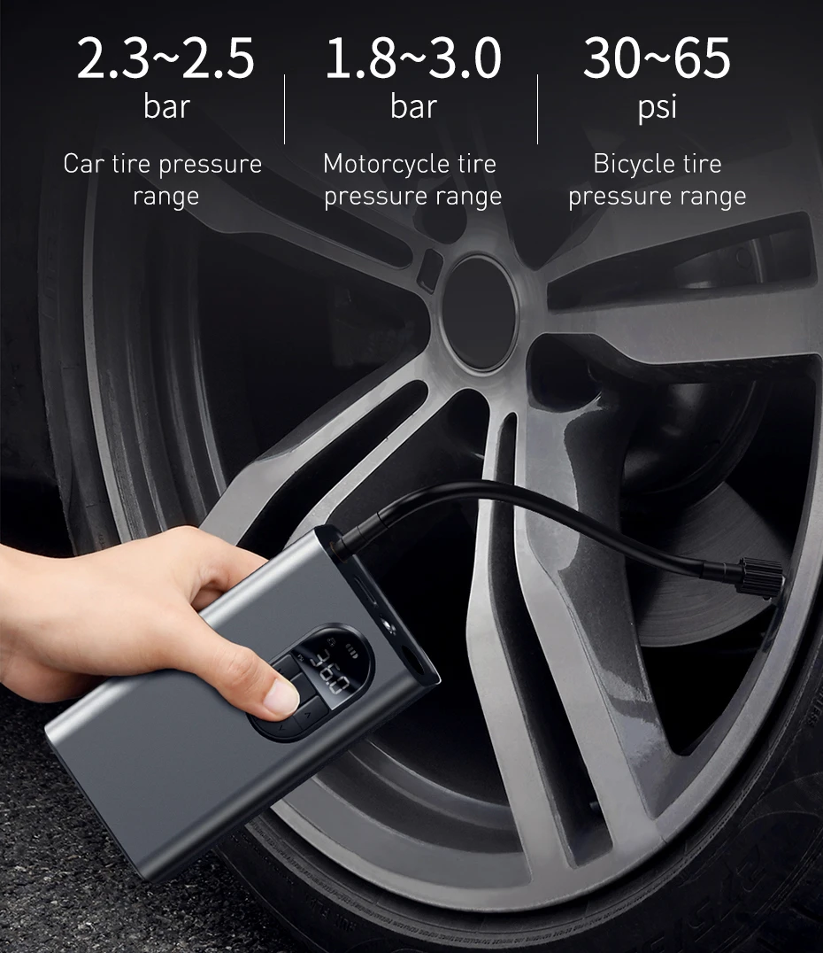 Comprar Baseus-Bomba de aire portátil para inflar las ruedas del coche, inflador inteligente de aire comprimido, dispositivo digital para detección automática de presión en neumáticos, apto para automóvil, bicicleta y moto