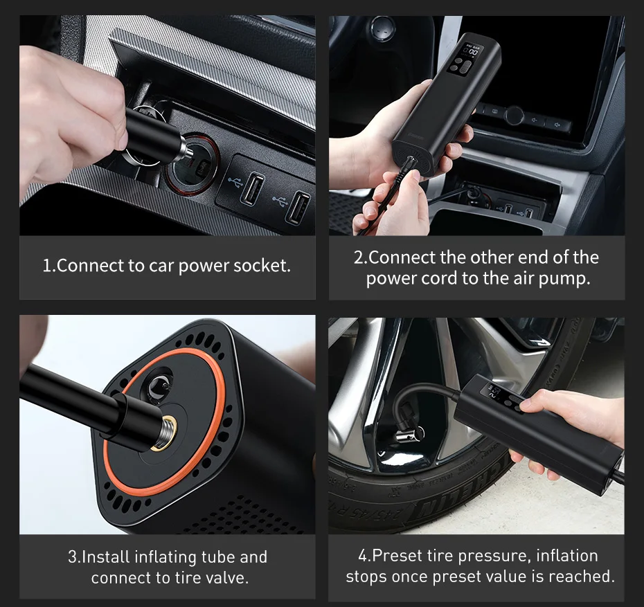Comprar Baseus-bomba de compresor de aire portátil para coche, inflador de neumáticos para motocicleta eléctrica, bicicleta, compresores de pantalla Digital