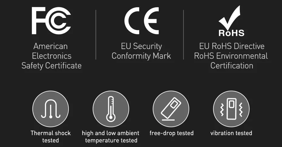 Ha pasado múltiples rigurosas pruebas de laboratorio y ha obtenido la certificación FCC para garantizar su seguridad