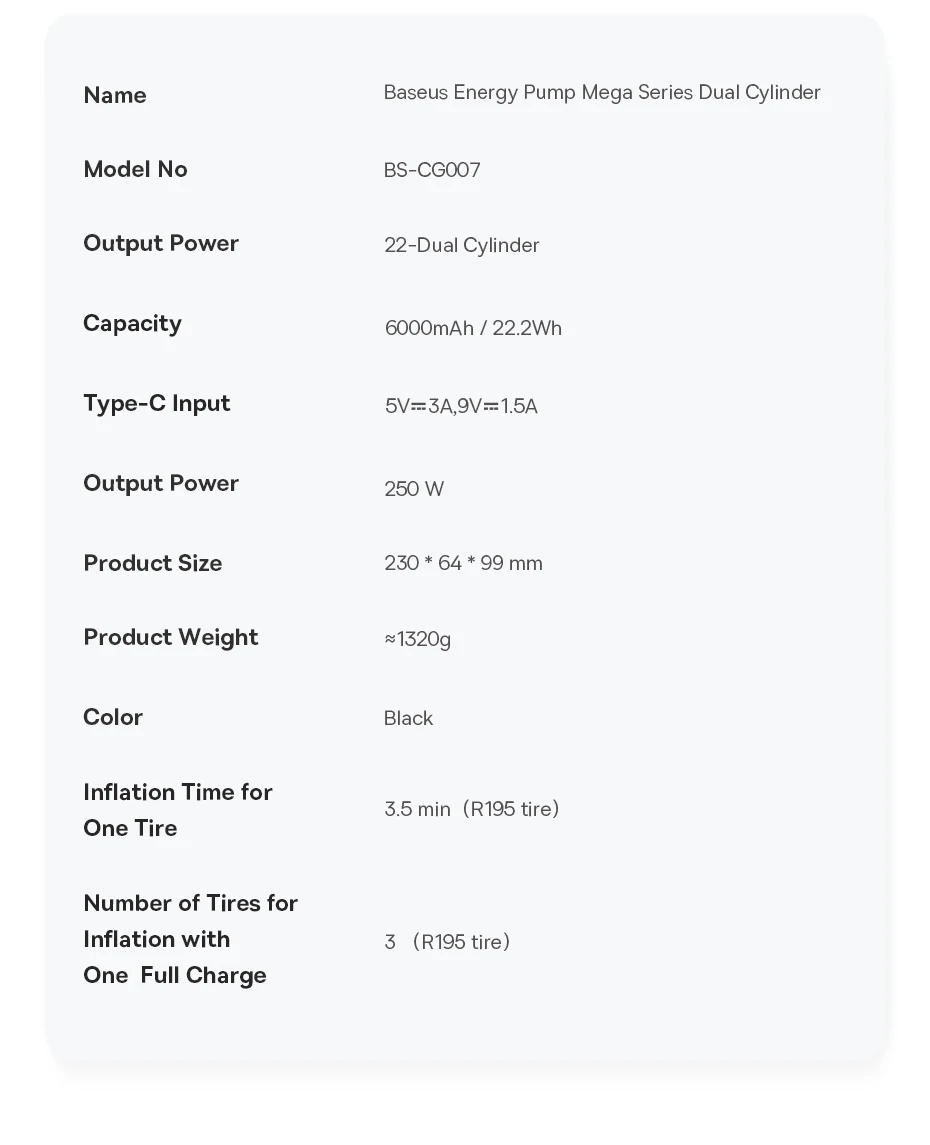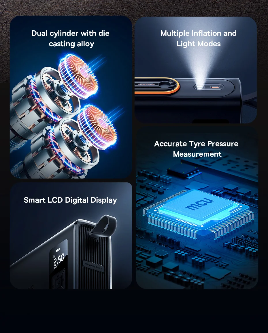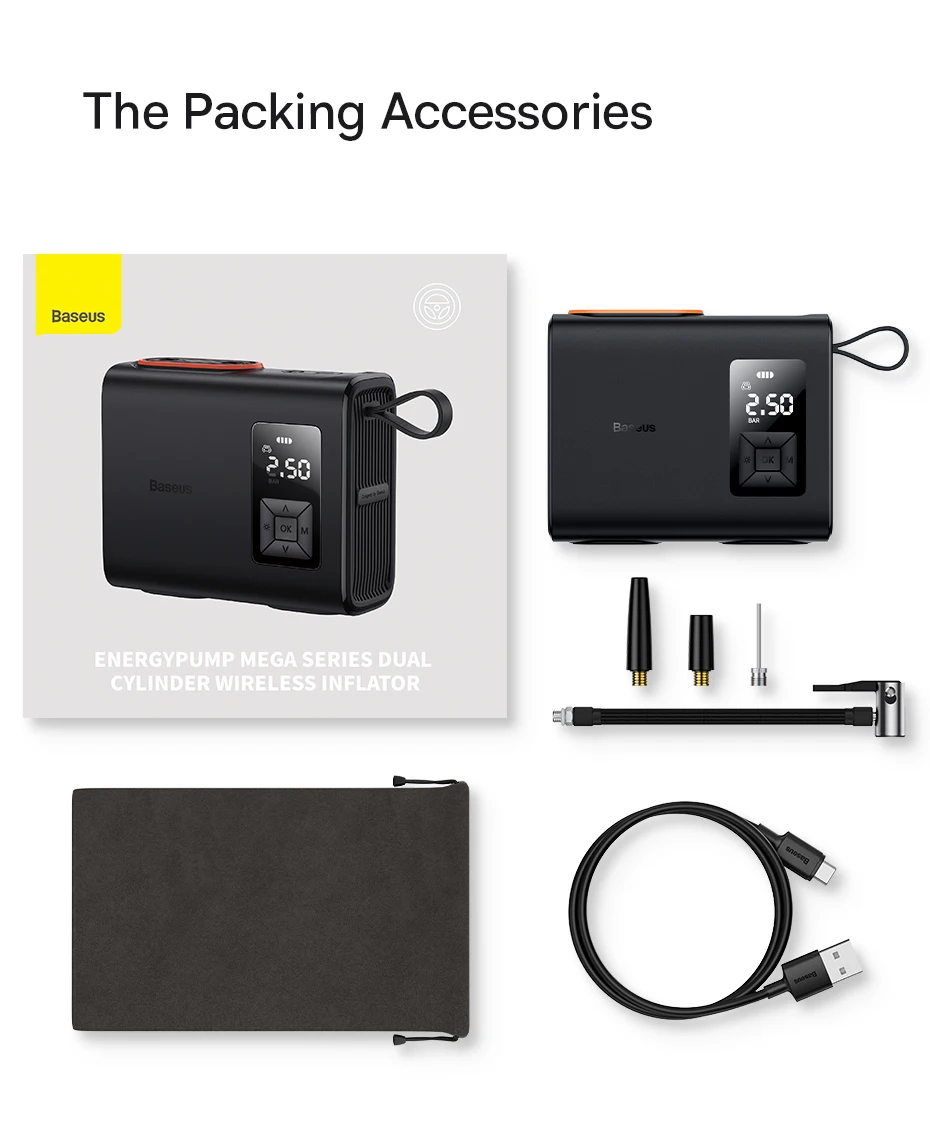 Inflador inalámbrico de bomba de energía de doble cilindro de alta velocidad Baseus