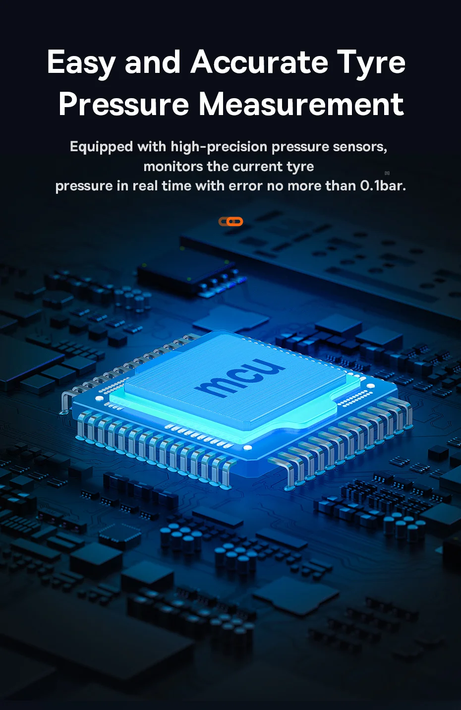 Equipado con sensores de presión de alta precisión, monitorea la presión actual de los neumáticos en tiempo real con un error de no más de 0,1 bar.