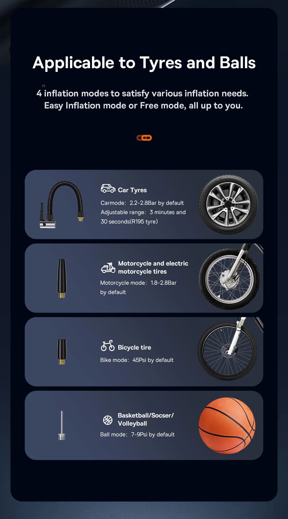 4 modos de inflado para satisfacer diversas necesidades de inflado. Modo de inflado fácil o modo libre, todo a usted.