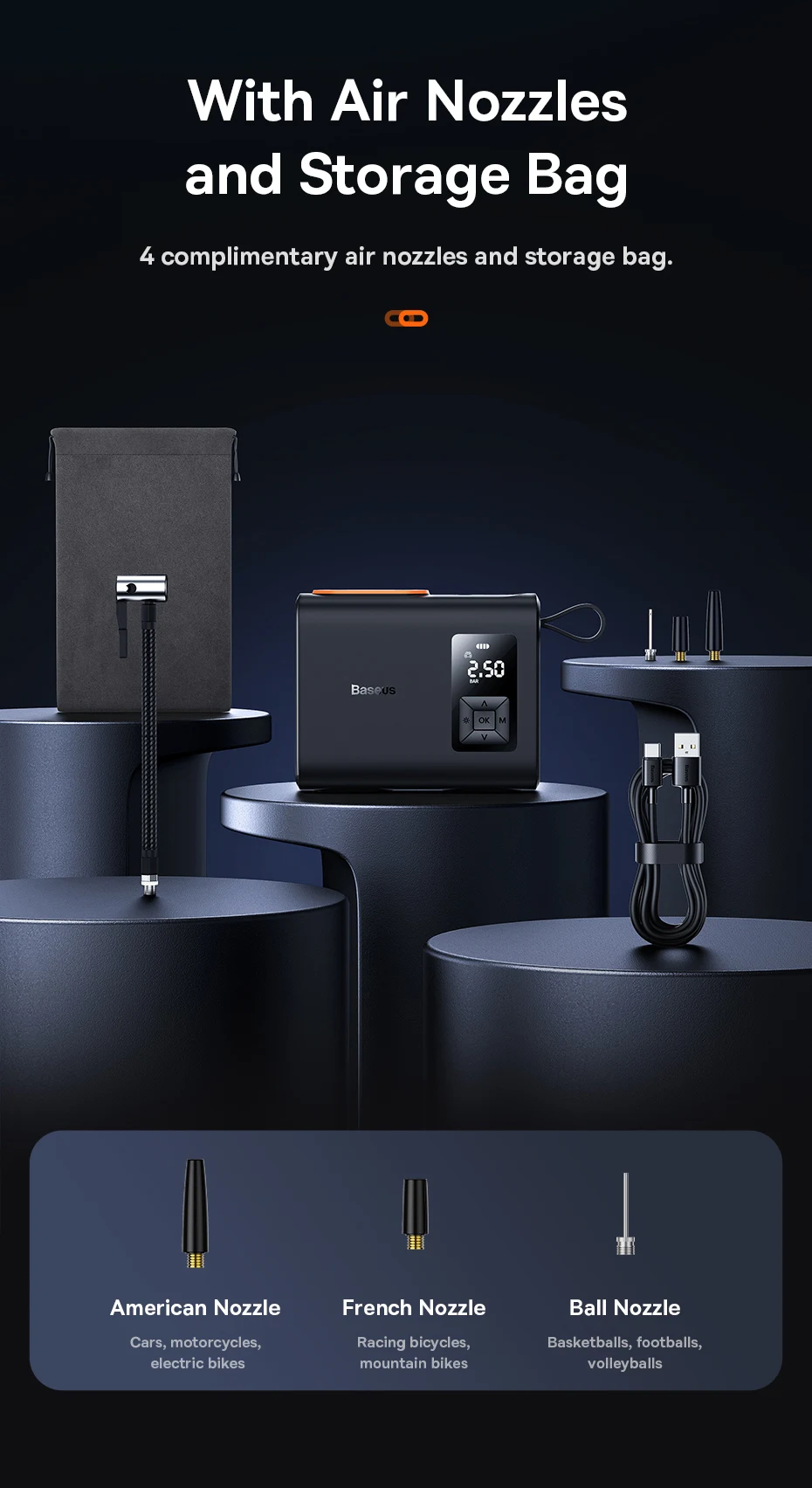 4 boquillas de aire y bolsa de almacenamiento gratuitas.