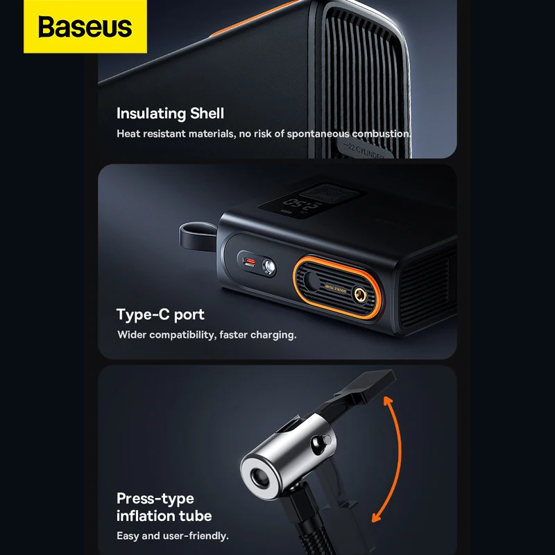 Comprar Baseus-bomba infladora de neumáticos inalámbrica, compresor de aire portátil para coche, motocicleta, bicicleta, inyector de presión, inflado eléctrico de neumáticos