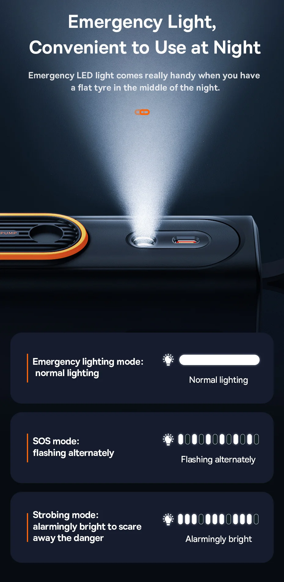 Luz de emergencia, cómoda de usar por la noche.