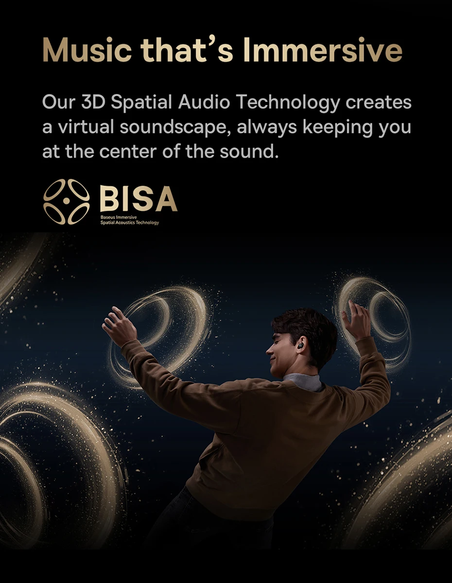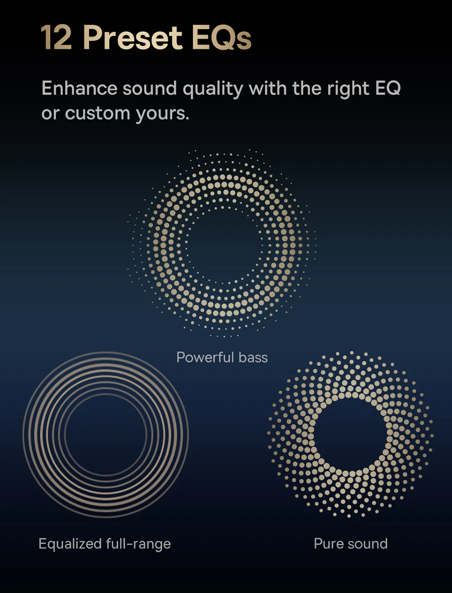 Seleccione el modo de graves para deportes, el modo de música para una escucha inmersiva diaria y el modo de juego para audio y video en sincronización completa