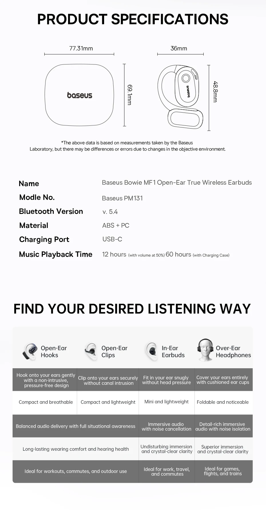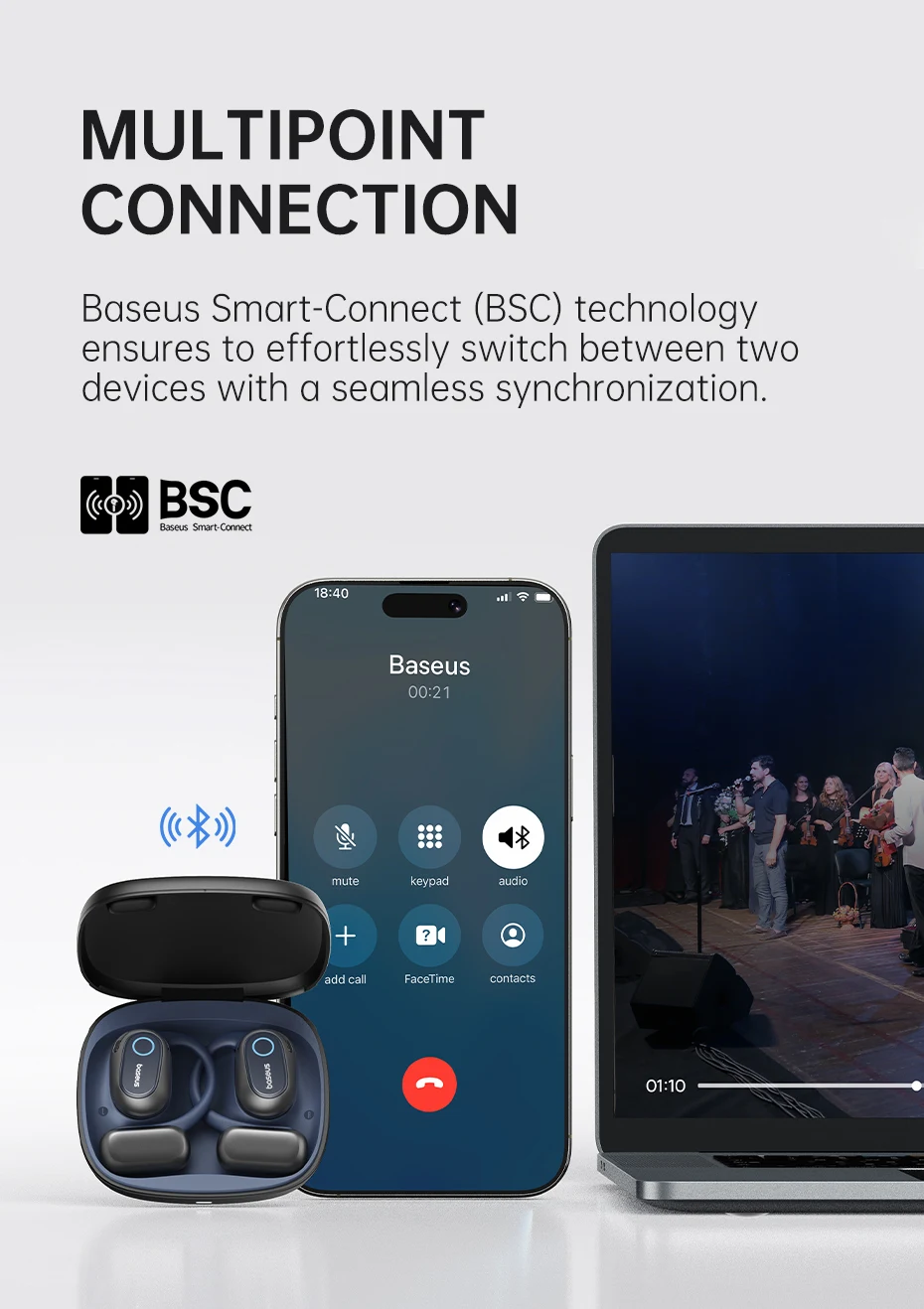 Auriculares inalámbricos verdaderos de oído abierto Baseus Bowie MF1