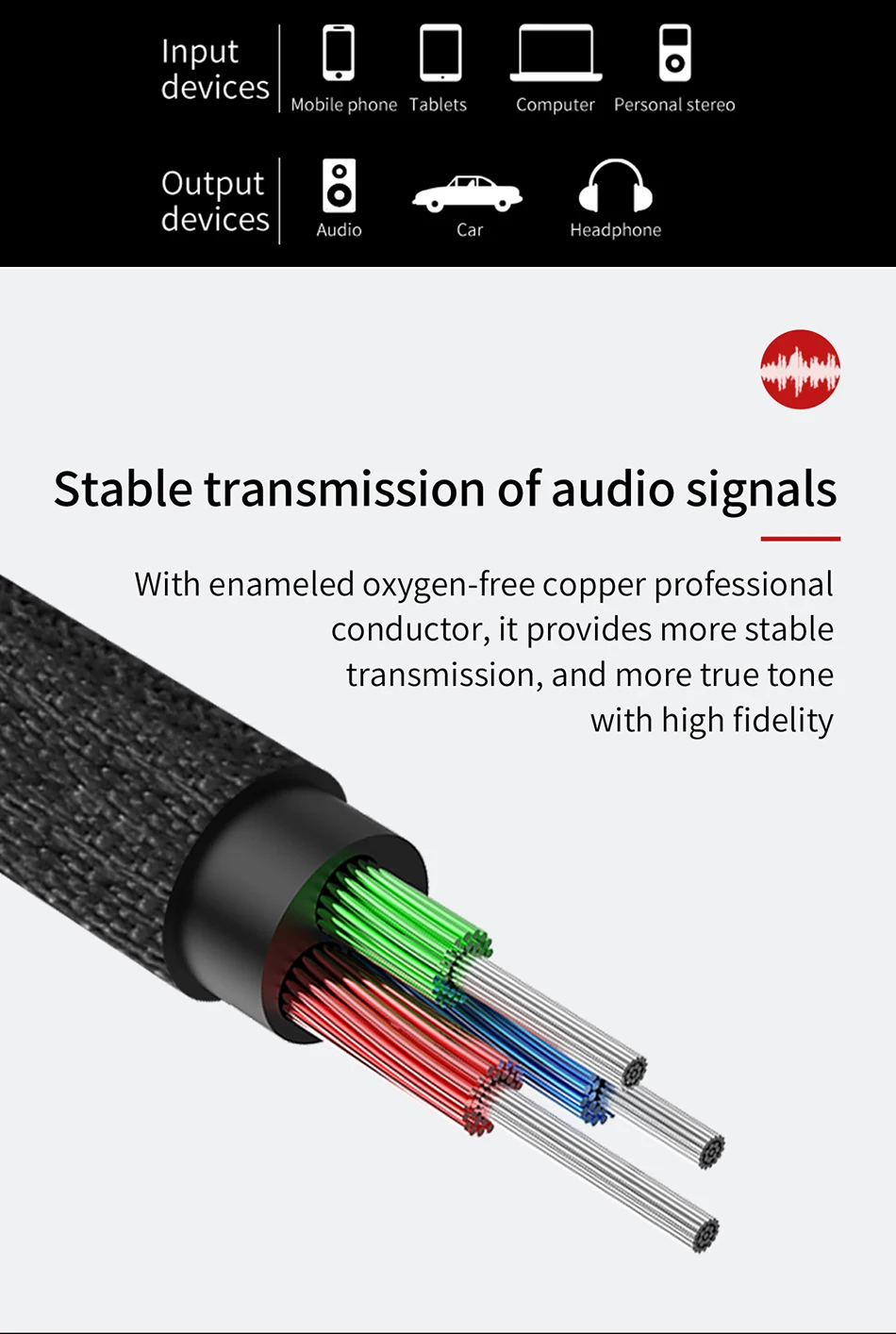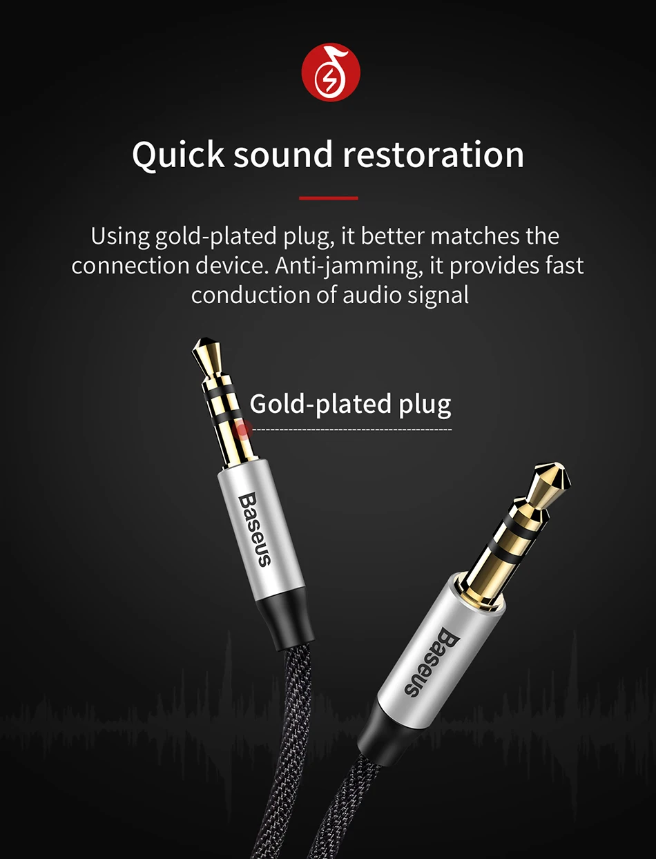 Using gold-plated plug, it better matches the connection device. Anti-jamming, it provides fast conduction of audio signal.