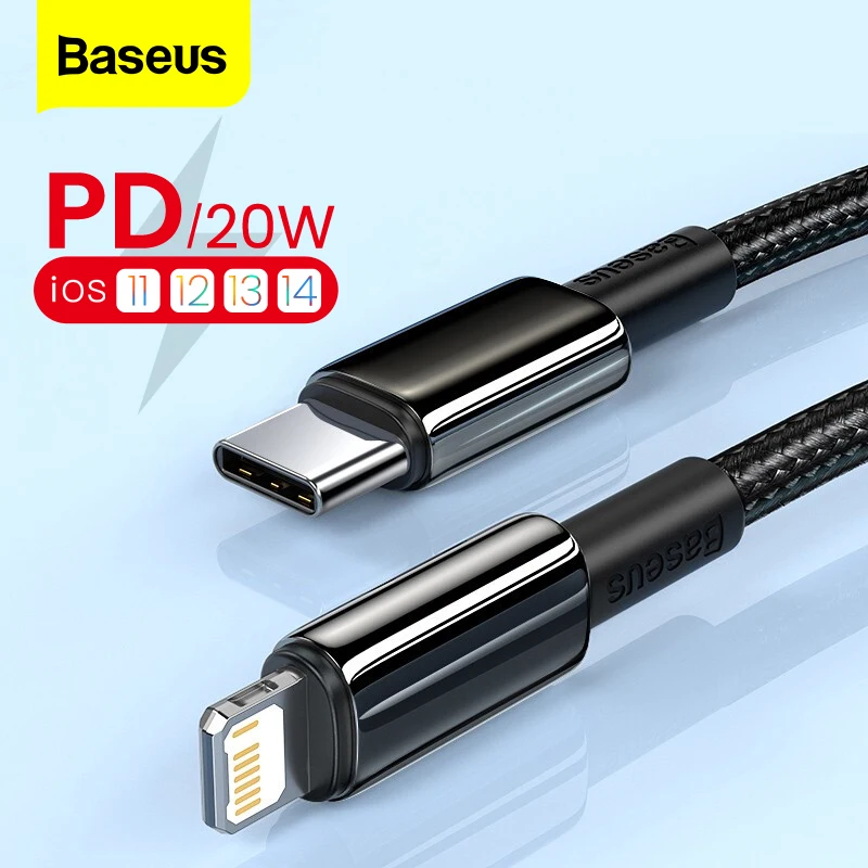 Comprar Baseus-Cable de datos de carga rápida para móvil, Cable USB tipo C PD de 20W para iPhone 11 12 Mini Pro Max X 8 7 6, Macbook iPad Mini Air