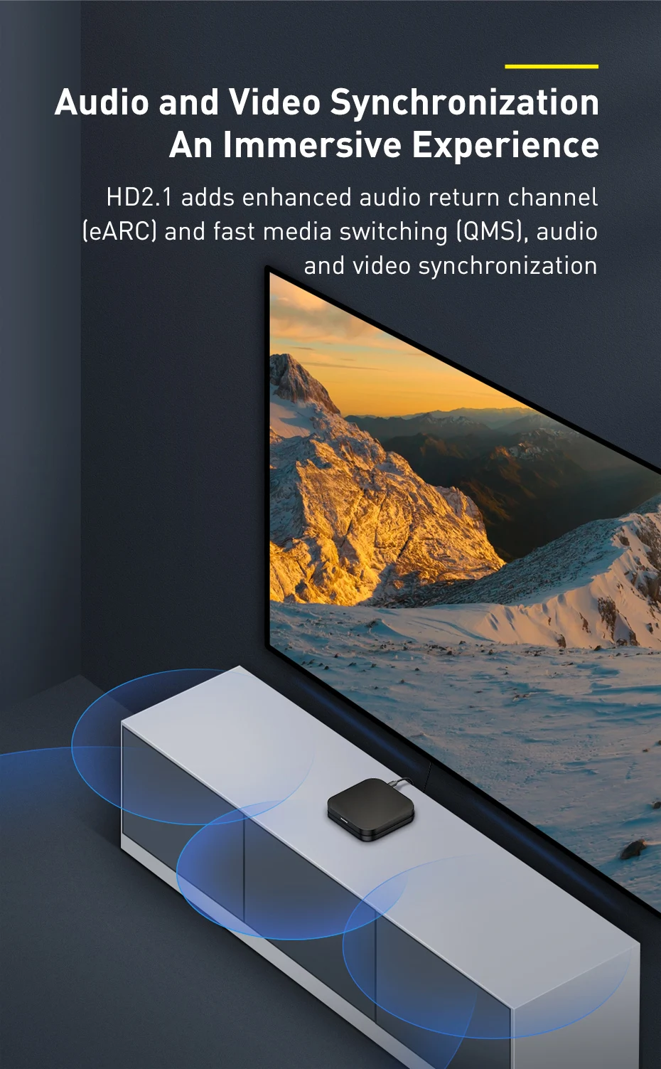 HD2.1 agrega canal de retorno de audio mejorado (eARC) y conmutación rápida de medios [QMS), sincronización de audio y video
