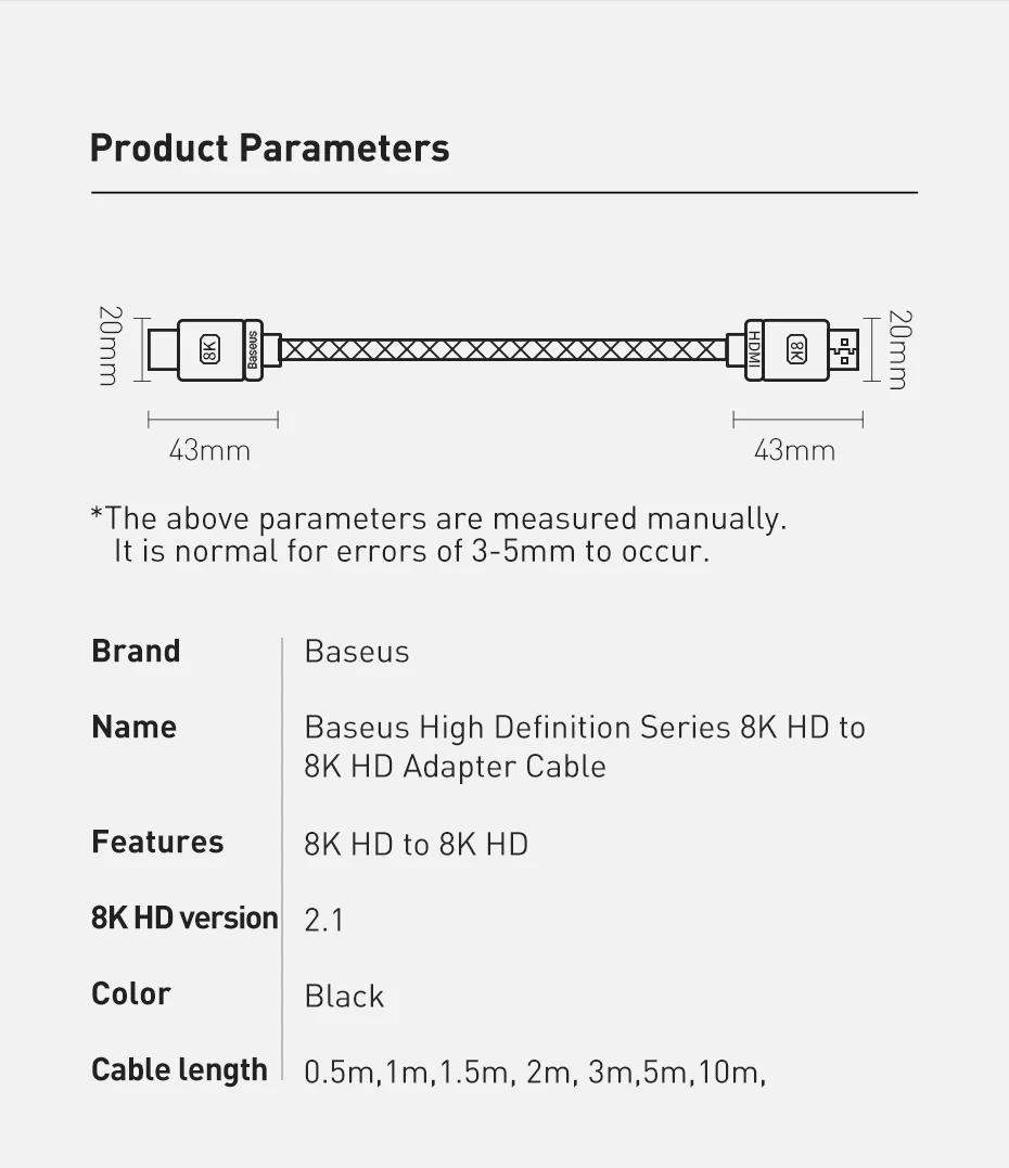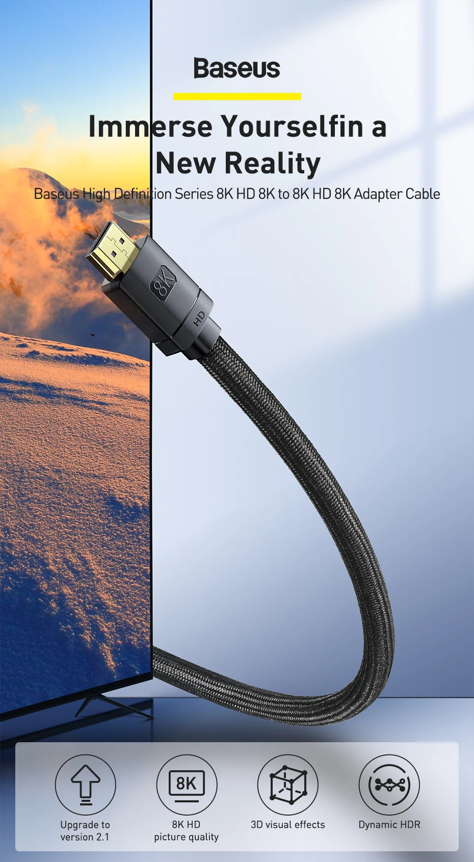 Comprar Baseus-Cable Digital compatible con HDMI, 8K, 60Hz, 4K, 120HZ, 48Gbps, para Xiaomi TV Box, PS5, PS4, PS 3, portátil y TV