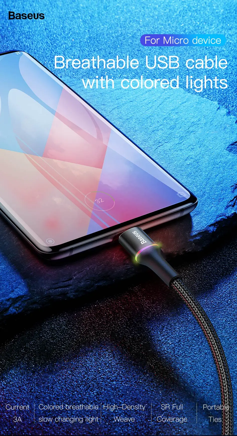 Comprar Baseus-Cable Micro USB de carga rápida 3A, Cable Microusb para Samsung, Xiaomi Redmi 4, Note 5 Pro, Cables de teléfono móvil Android