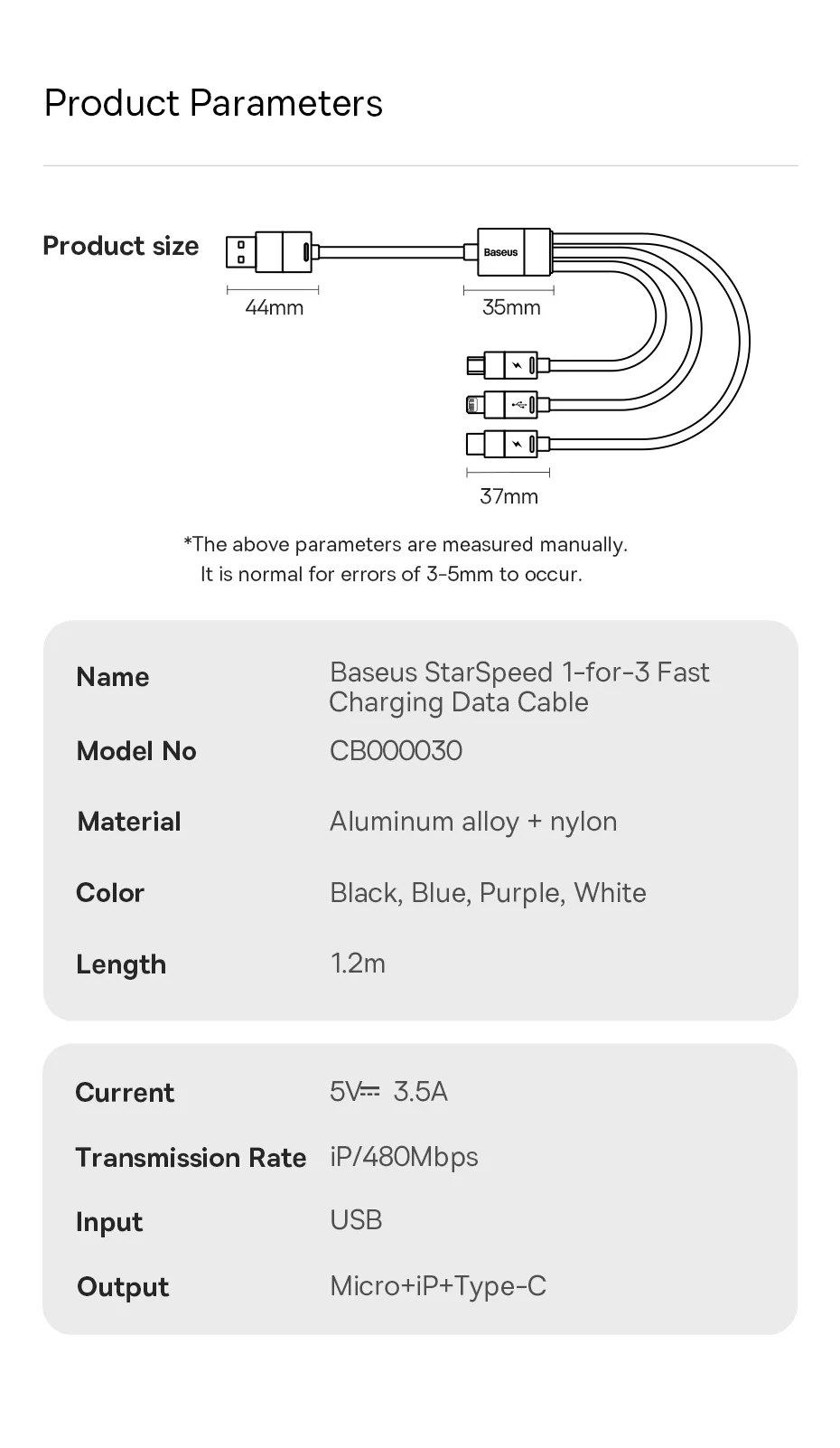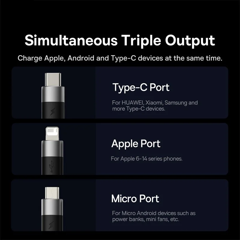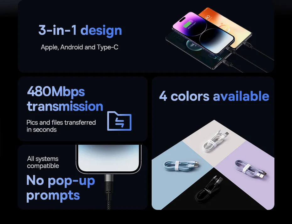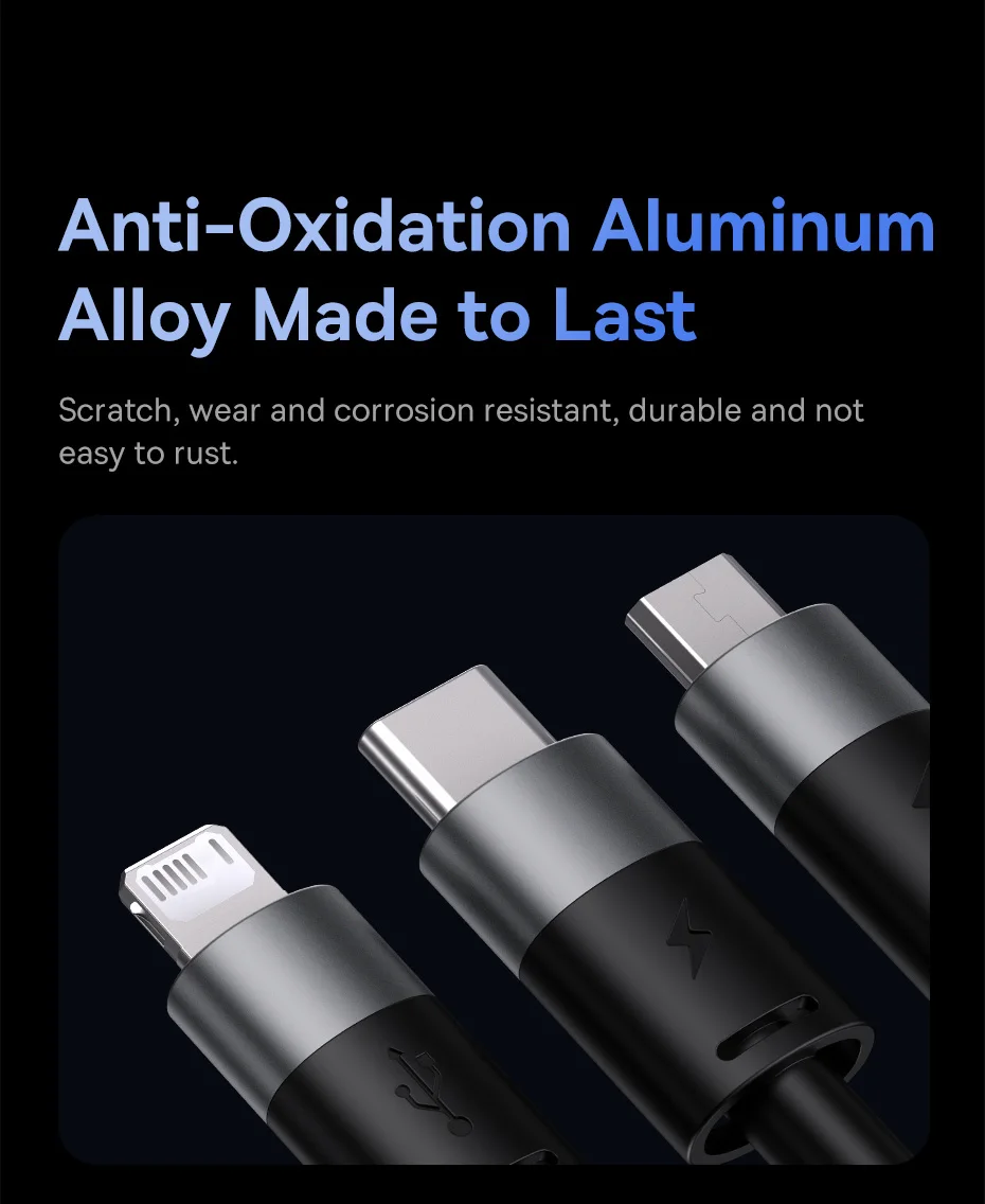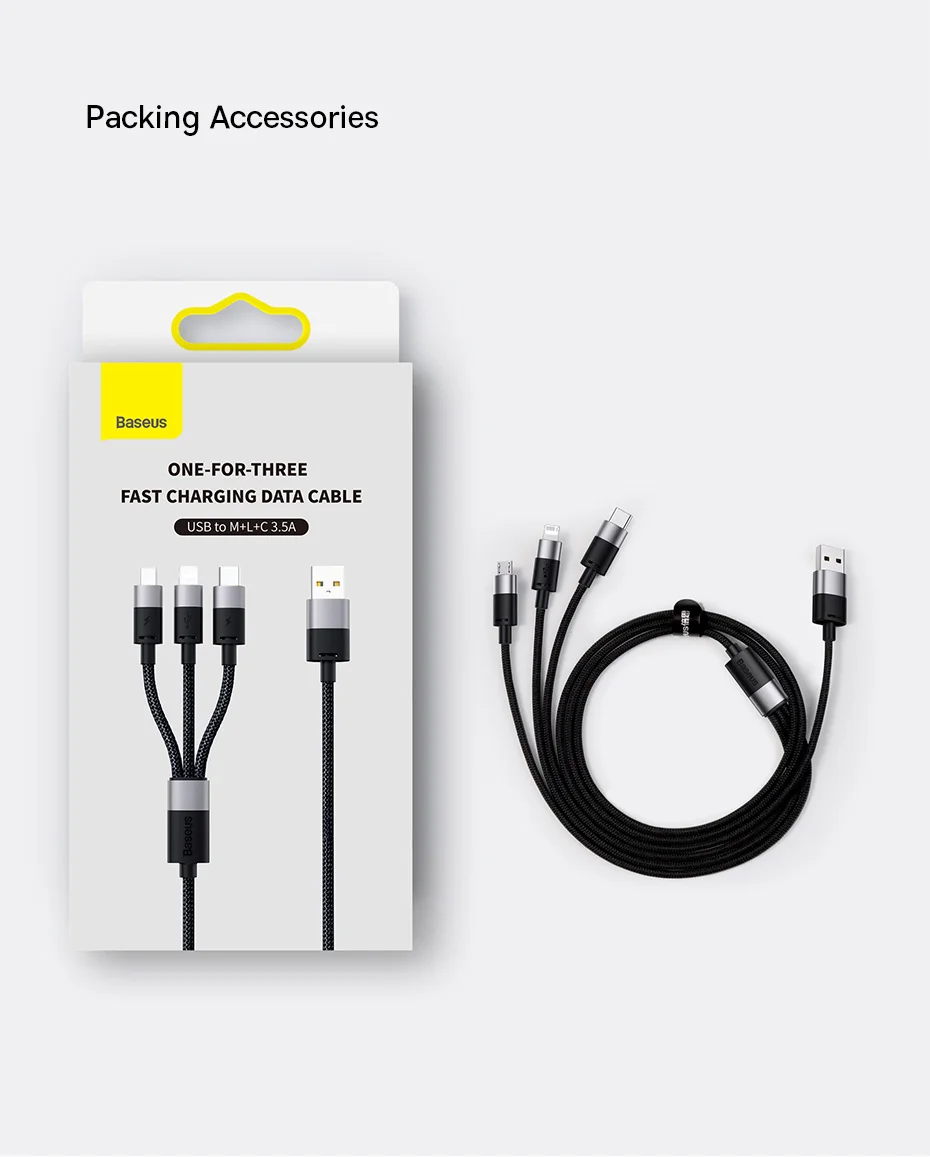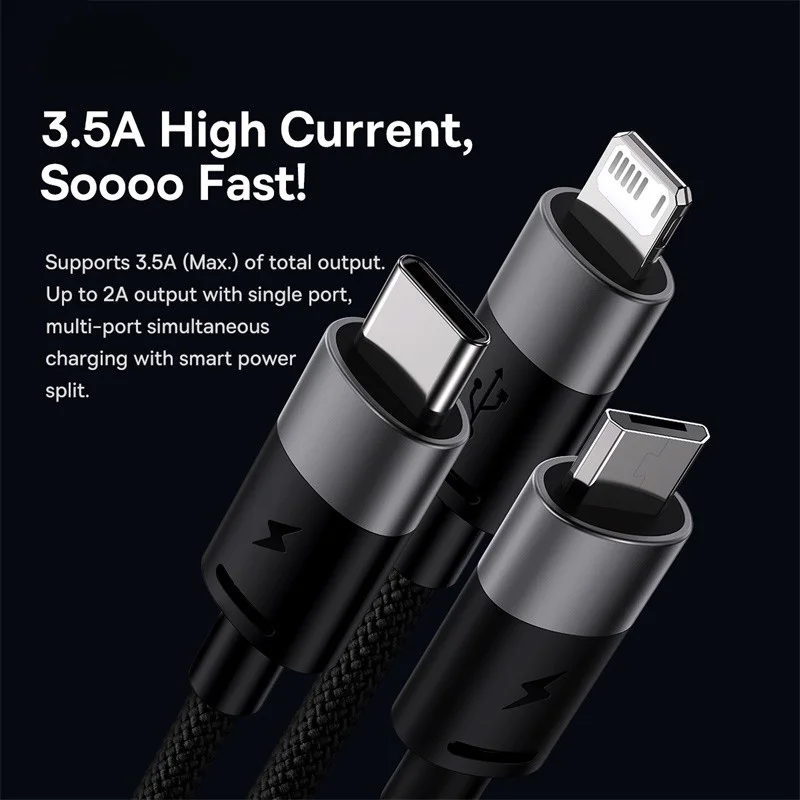 Comprar Baseus-Cable Micro USB tipo C 3 en 1 para iPhone 14, 13, 12 Pro, 11, 3.5A, Macbook Pro, Samsung y Xiaomi