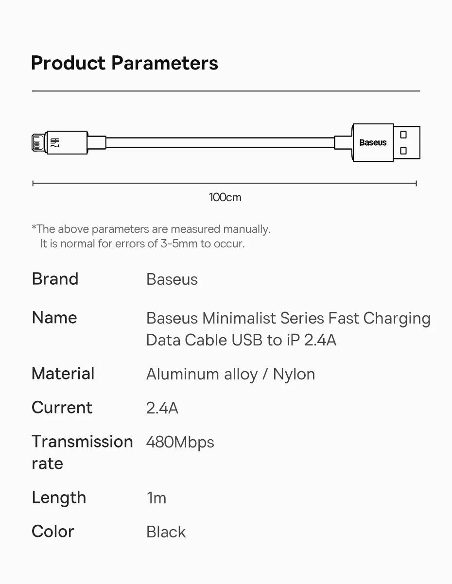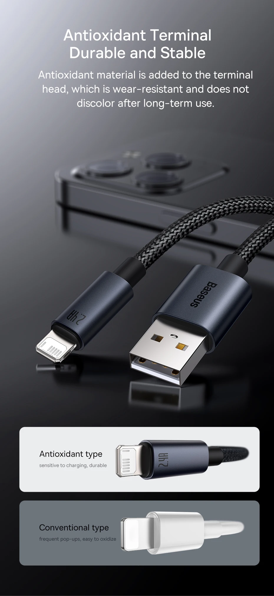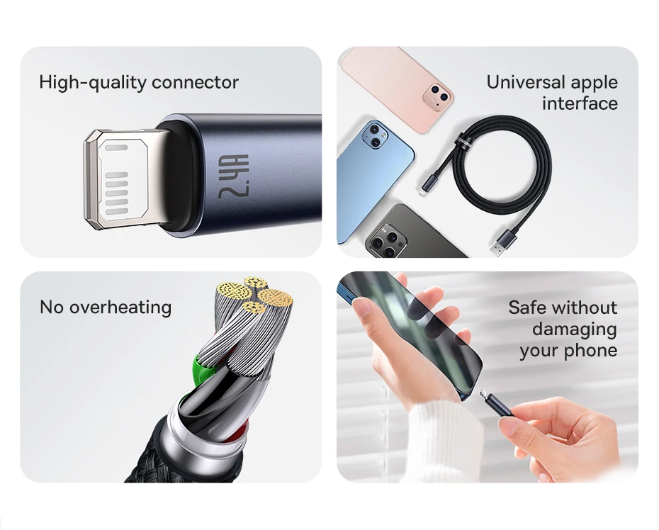 Comprar Baseus-Cable USB 2.4A de carga rápida para iPhone, Cable de sincronización de datos, cargador de teléfono, para iPhone 13, 12, 11 Pro Max, 8 X