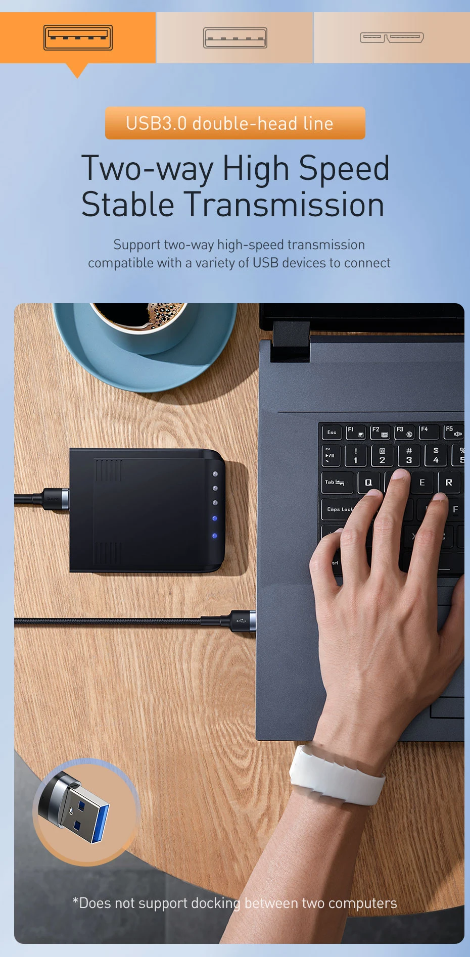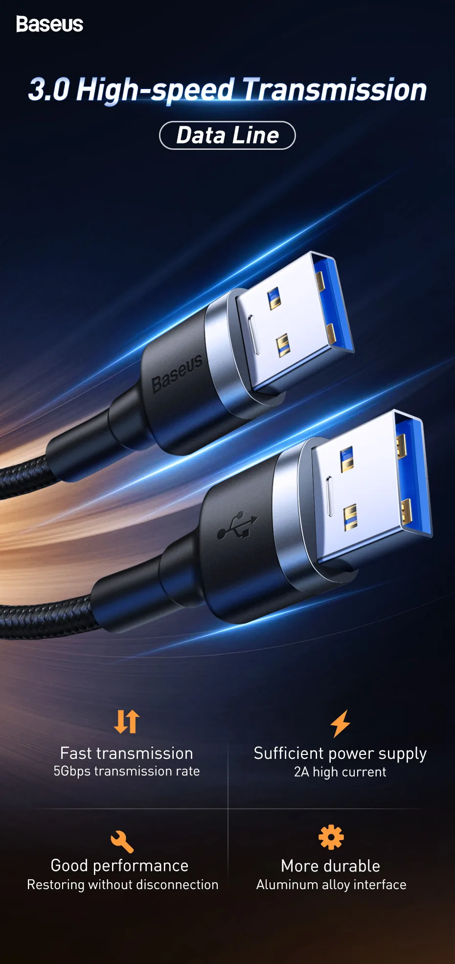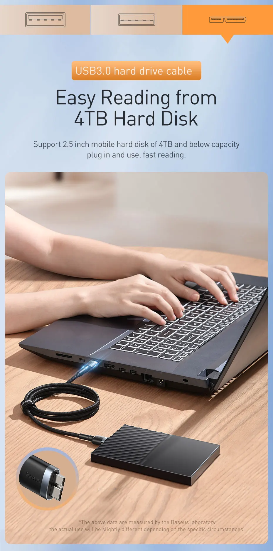 Comprar Baseus-Cable USB 5Gdps a USB 3,0, micro-b para Samsung, ordenador, TV, 4TB, disco duro de alta velocidad, 2A, Cables de carga USB de datos de teléfono