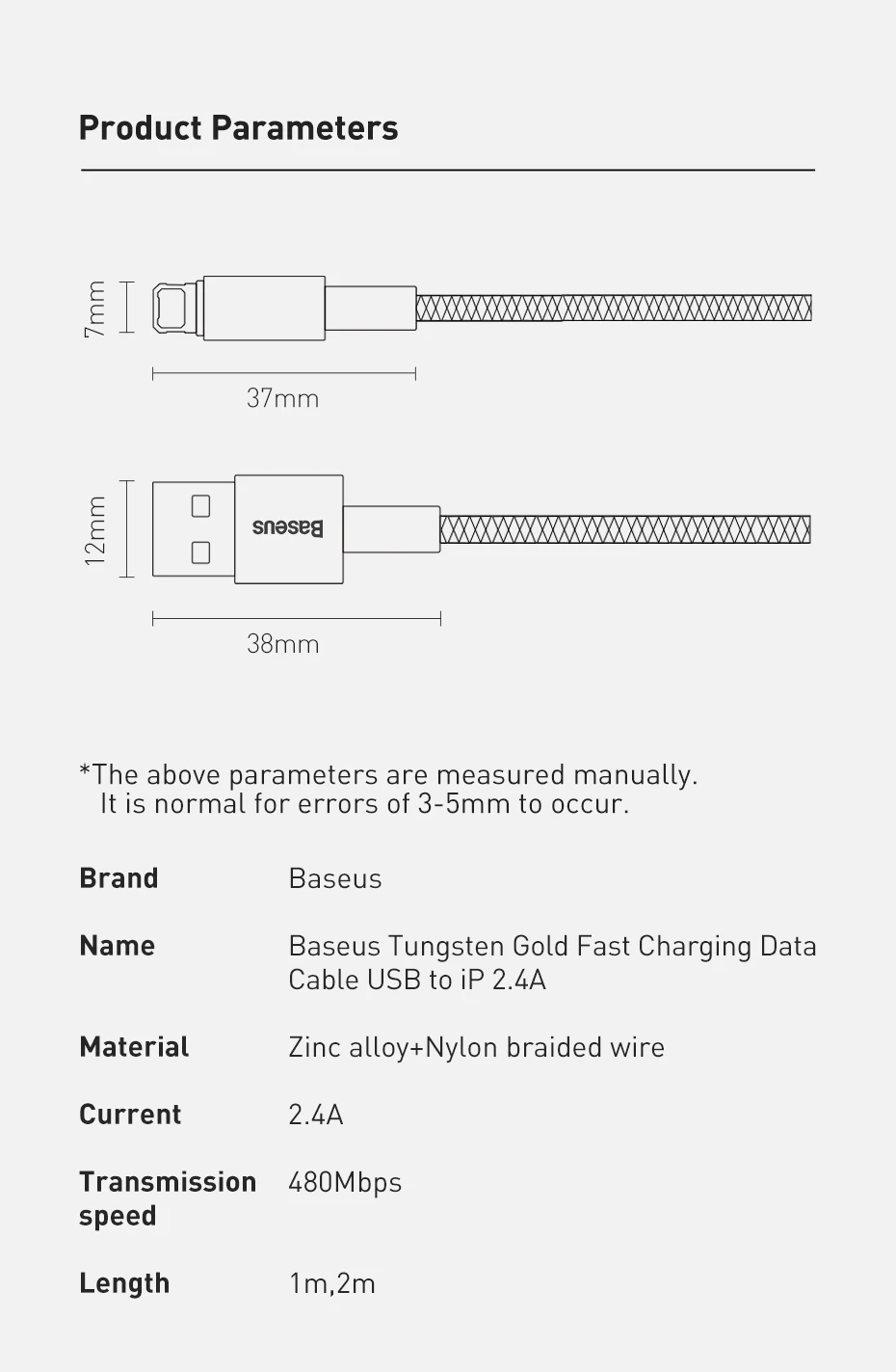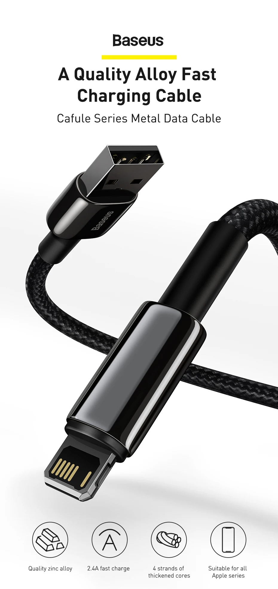 Comprar Baseus-Cable USB de carga rápida para iPhone, Cable de carga de 2.4A para iPhone 12 11 Pro Max XR Xs X, Cargador USB a línea de datos de iluminación