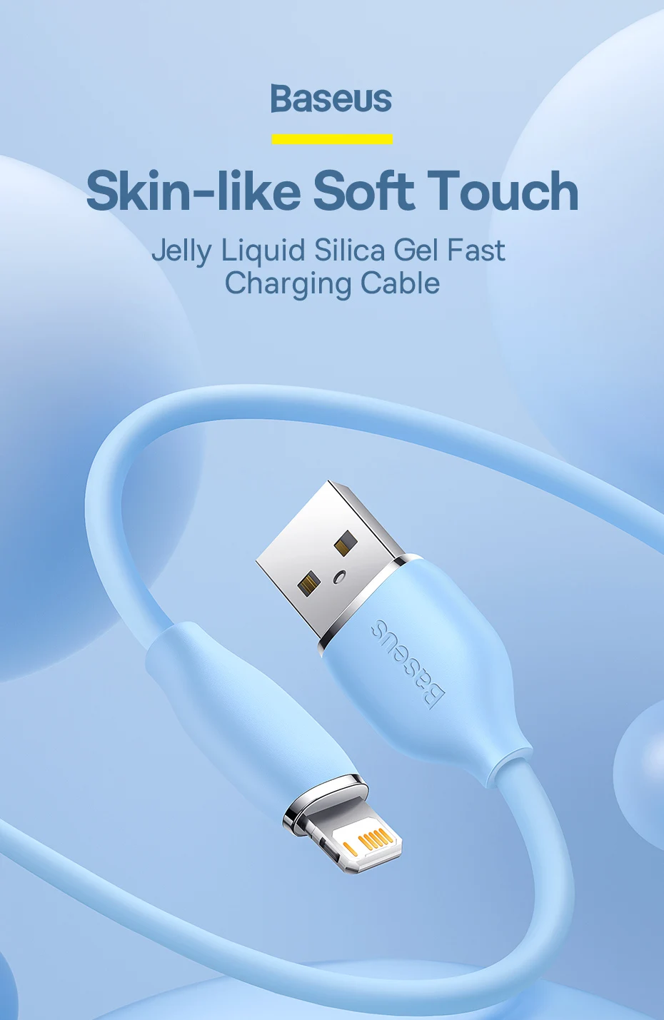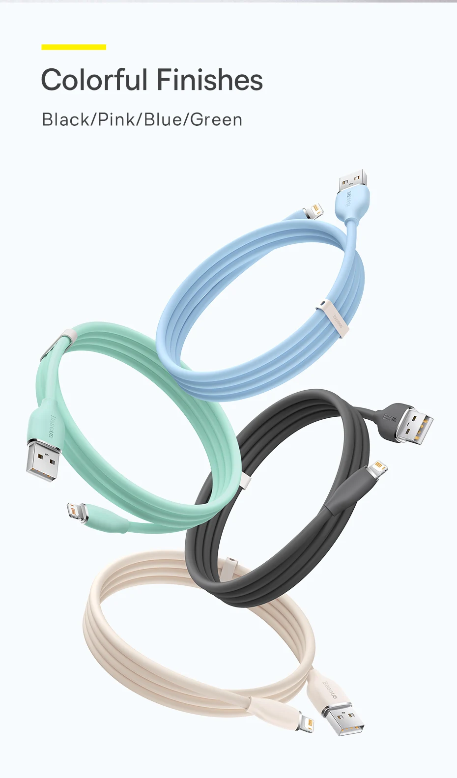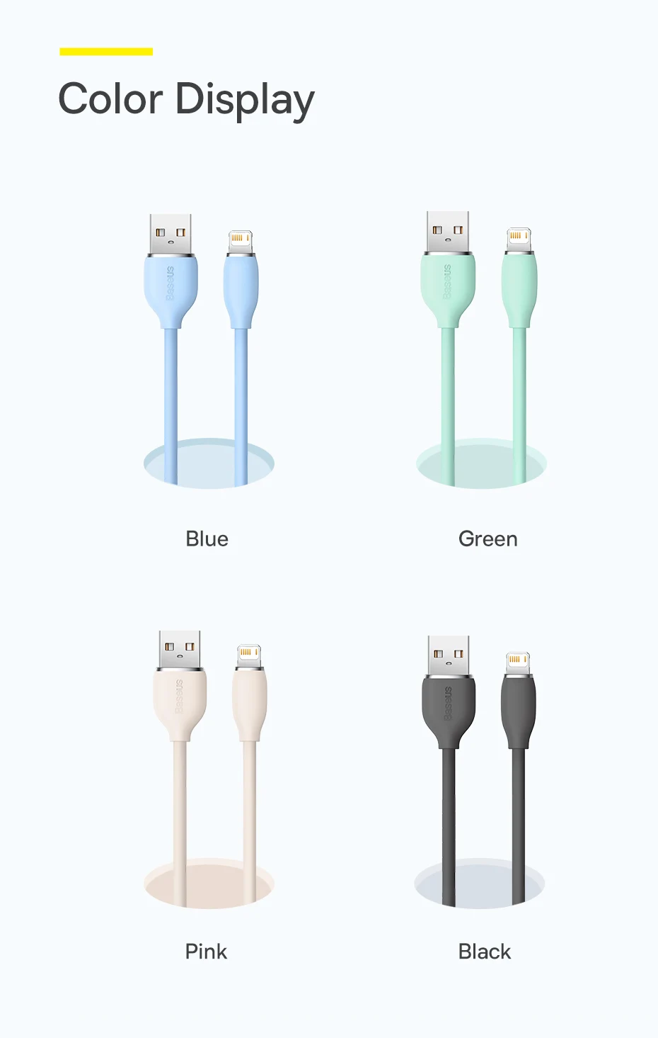 Comprar Baseus-Cable USB de Gel de sílice líquido para iPhone, Cable de carga rápida de 2,4 a para iPhone 14, 13, 12, 11 Pro Max
