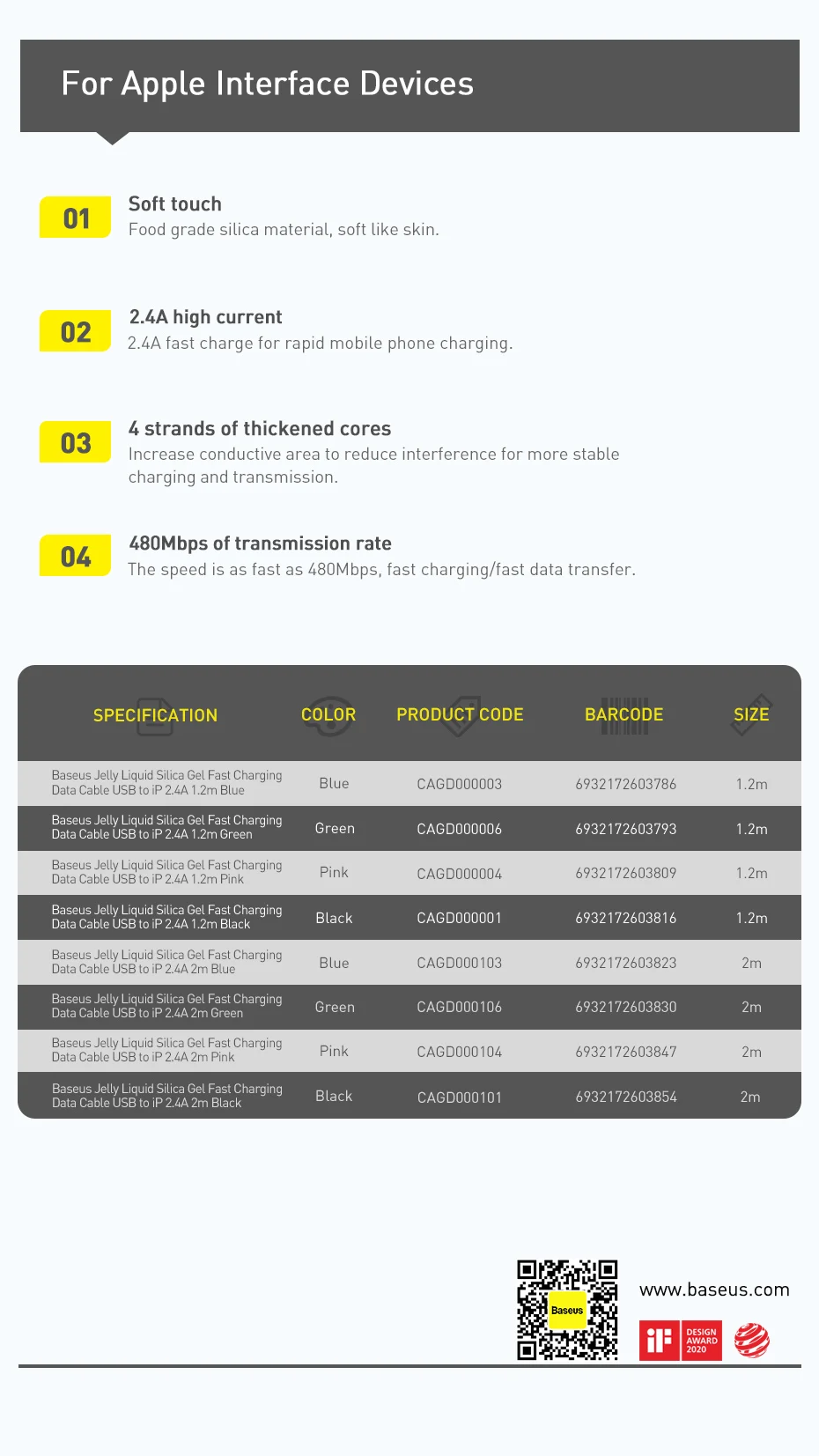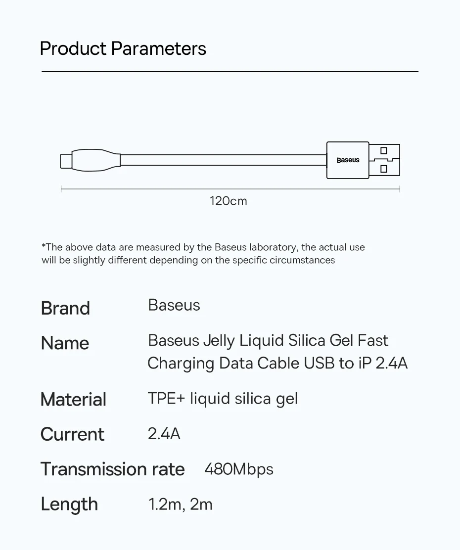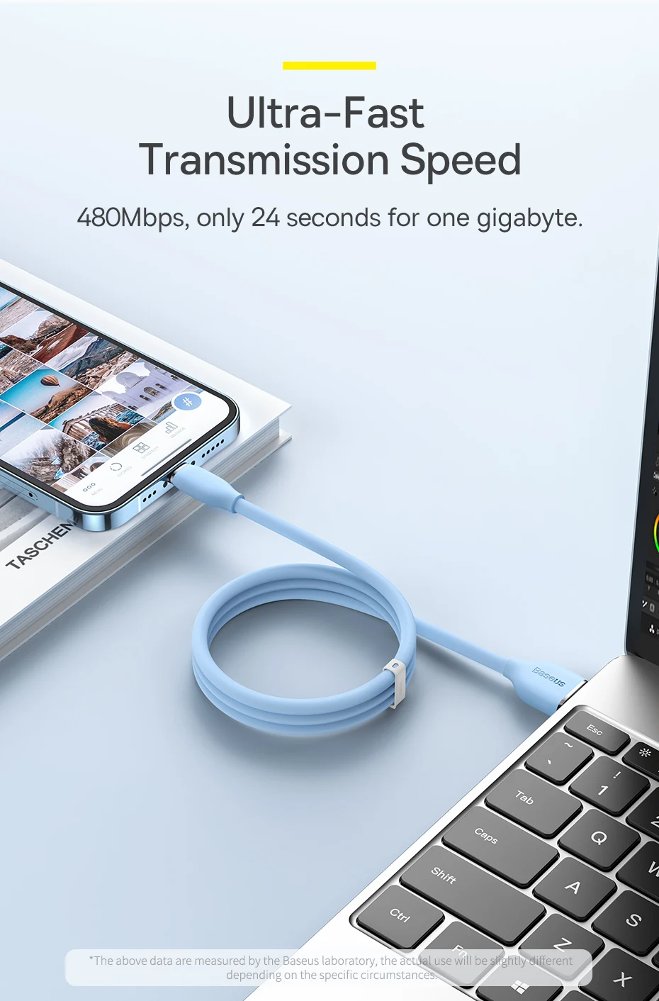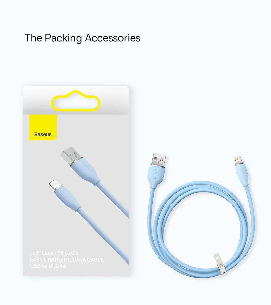 Comprar Baseus-Cable USB de Gel de sílice líquido para iPhone, Cable de carga rápida de 2,4 a para iPhone 14, 13, 12, 11 Pro Max