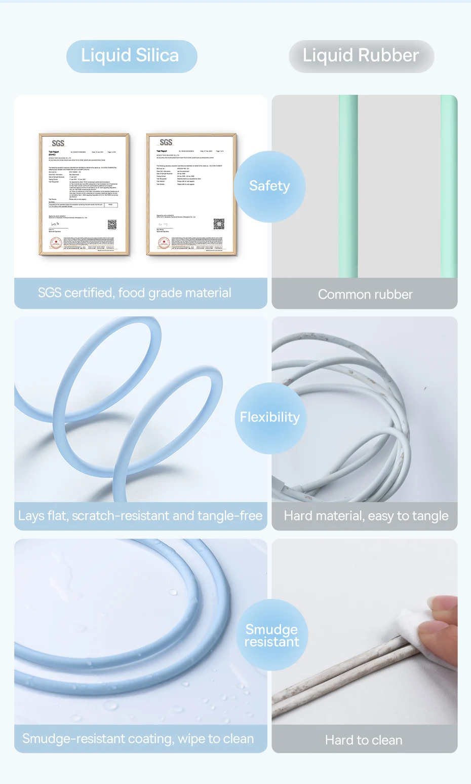 Cable de sílice líquida, increíblemente suave como tu piel.
