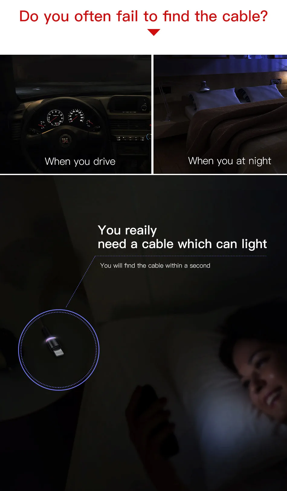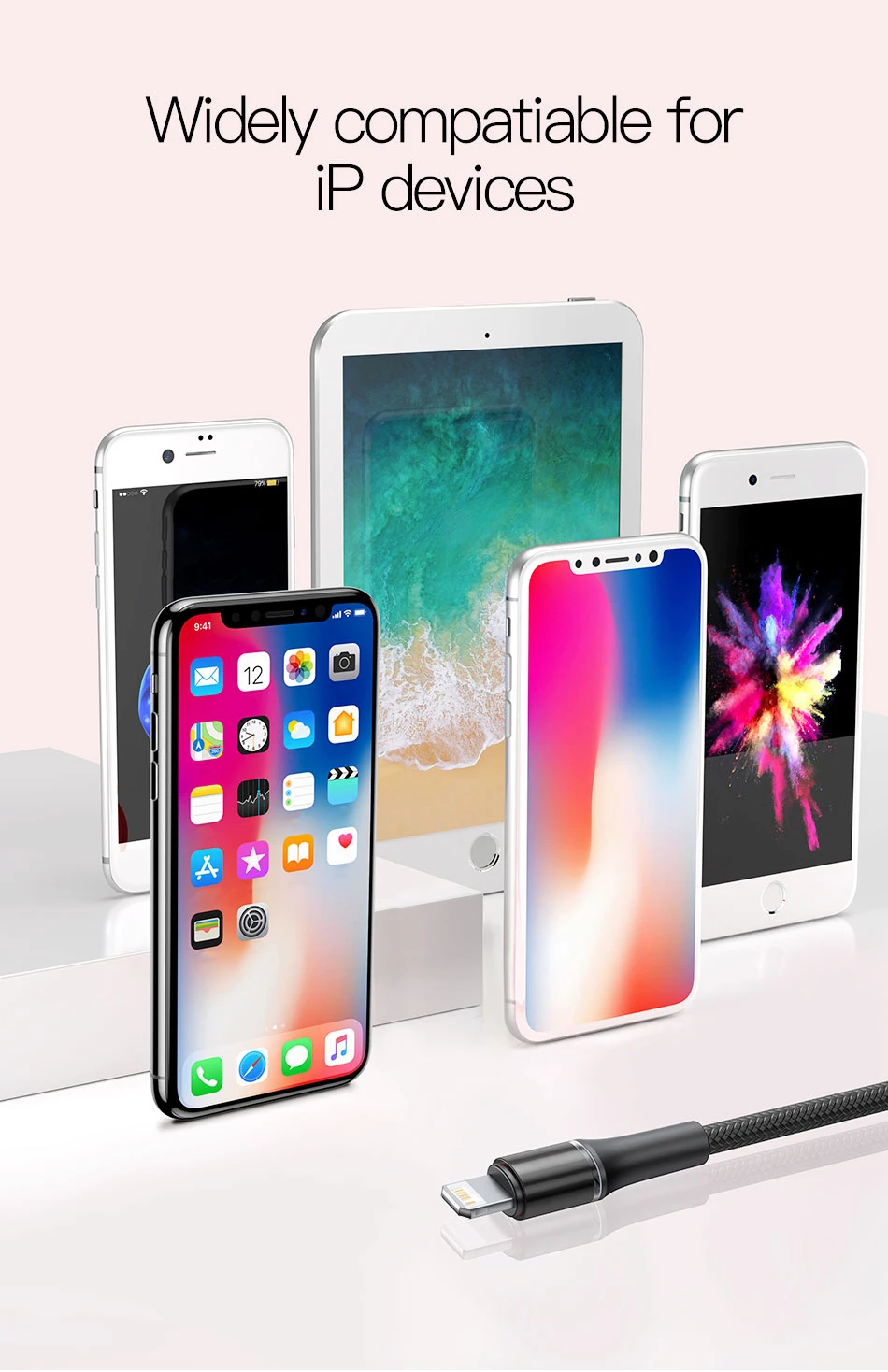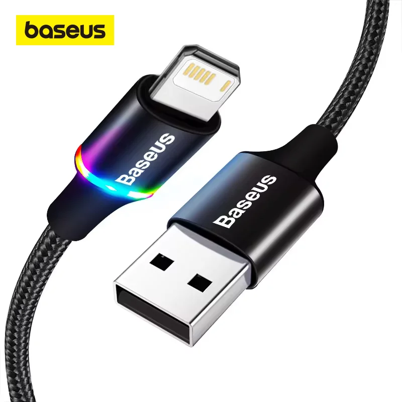 Comprar Baseus-Cable USB LED para iPhone 13, 12, 11 Pro, Xs Max, Xr 8, 7, 6, cargador de carga rápida, Cable de datos para teléfono móvil, Cable para iPad