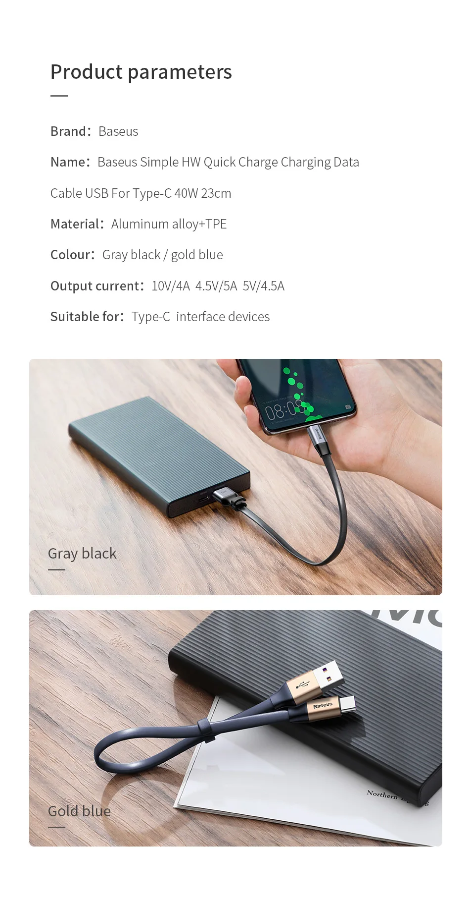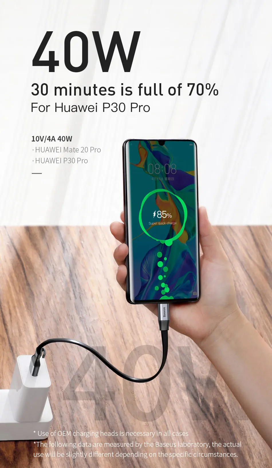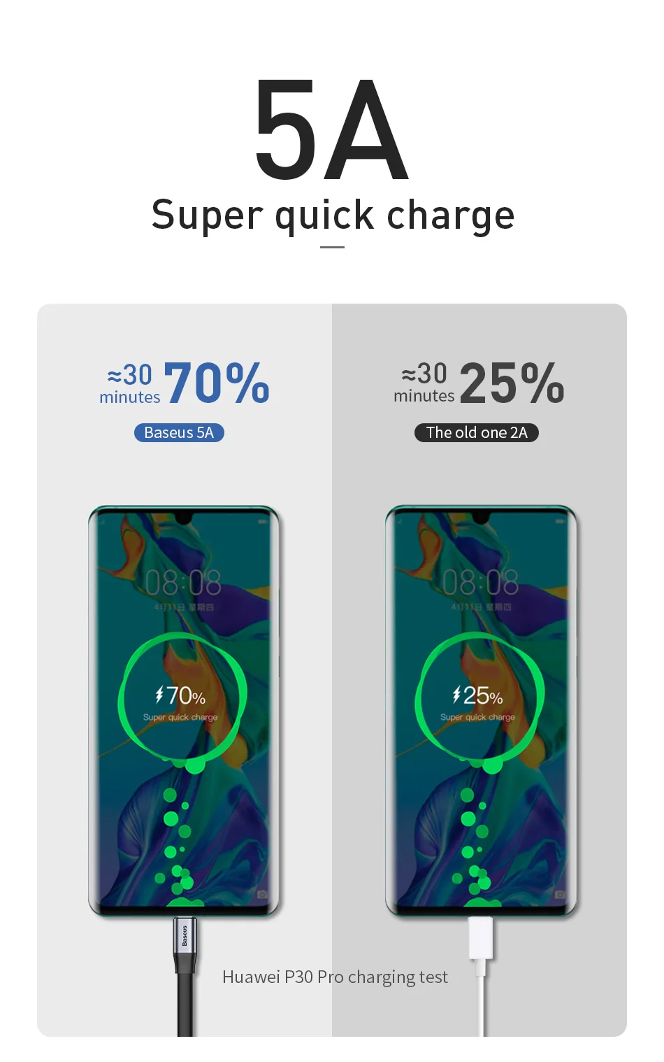 Comprar Baseus-Cable USB tipo C 5A para móvil, cargador de carga rápida, USB-C, para Xiaomi Mi Redmi note 9, Samsung