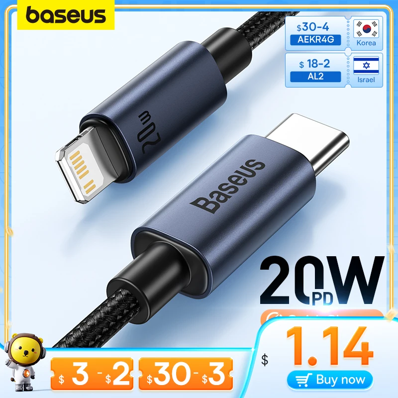 Comprar Baseus-Cable USB tipo C para iPhone, dispositivo de carga rápida, PD, 20W, iPhone 13, 12, 11 pro max, X, XR, 8