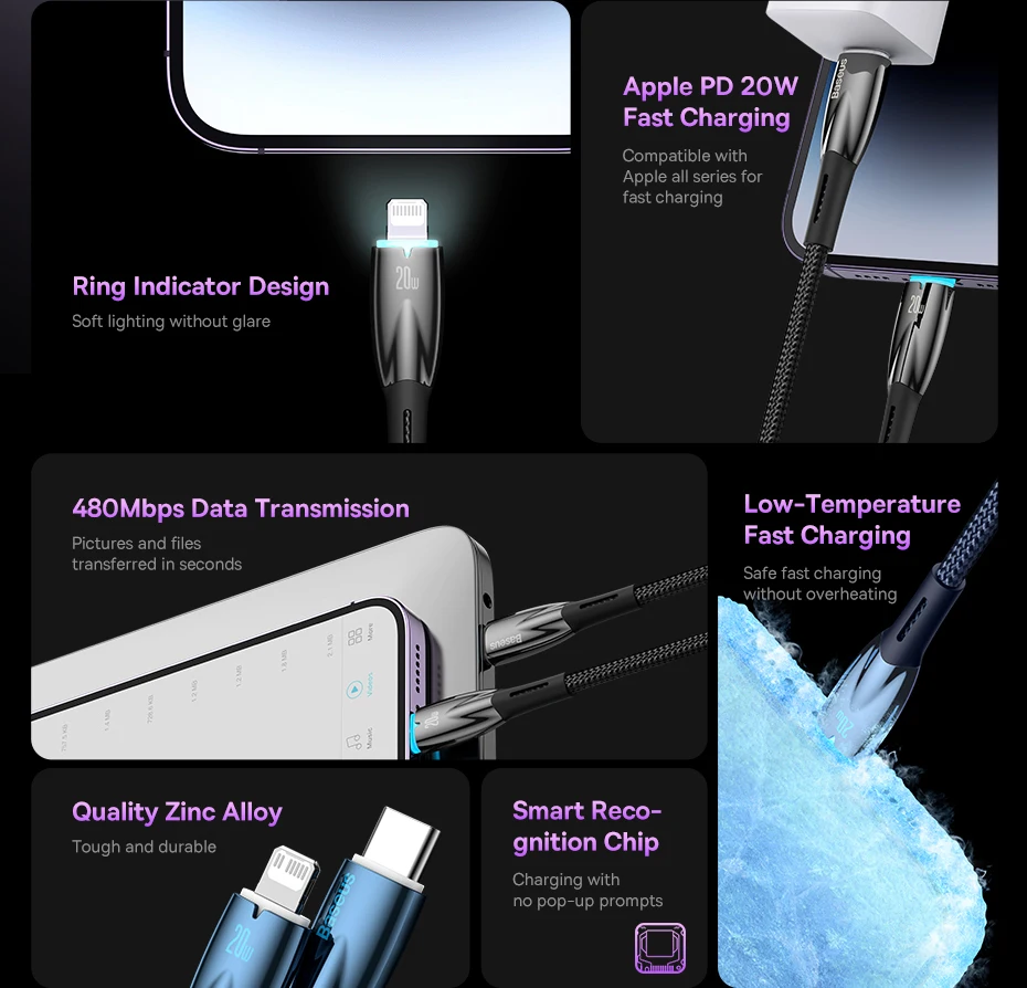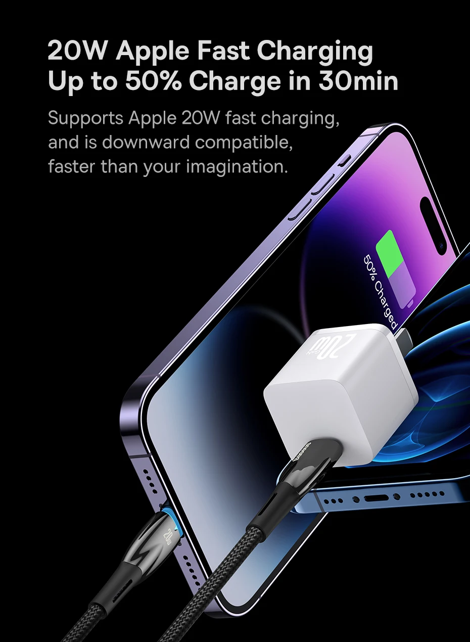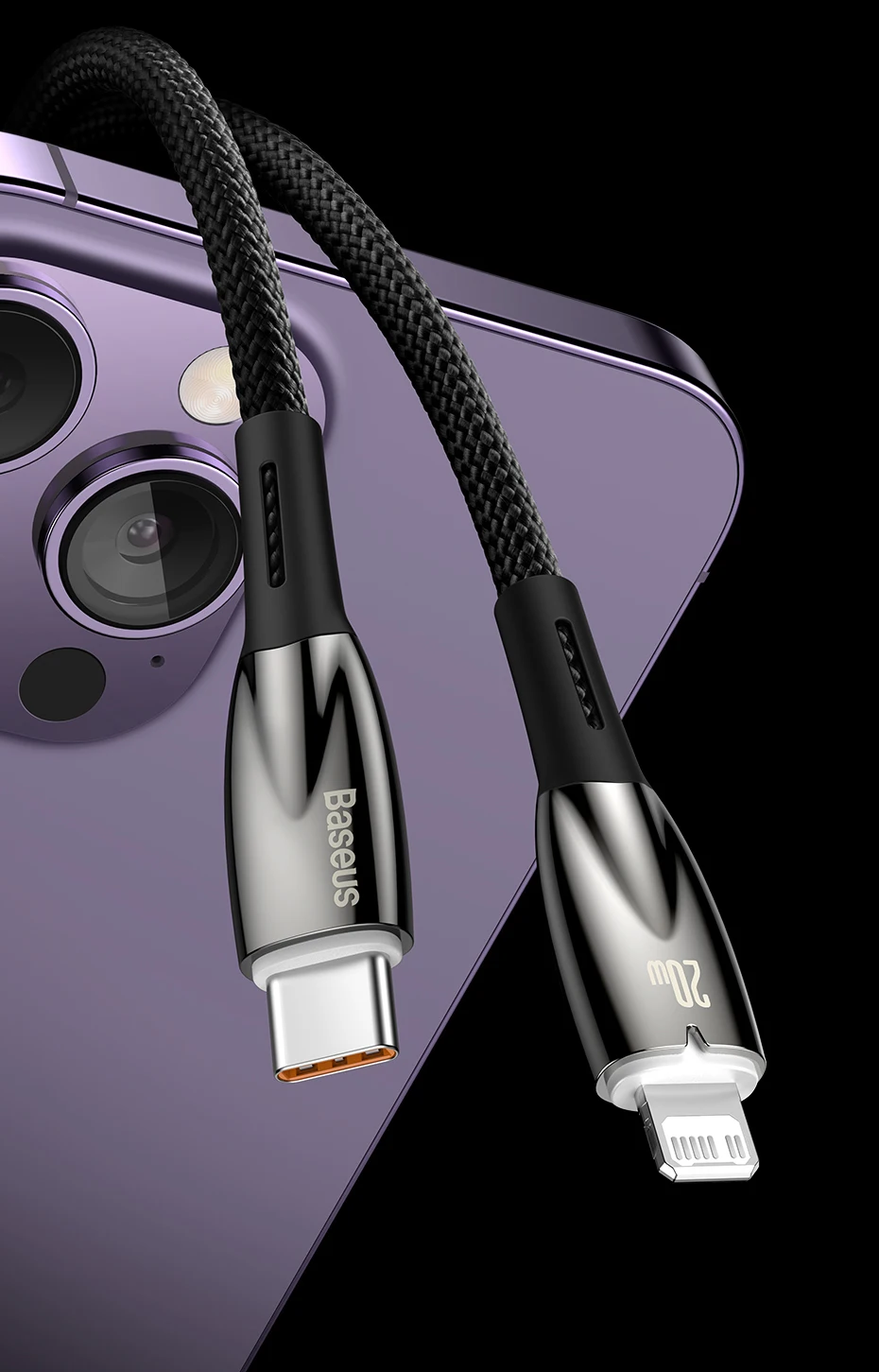 Comprar Baseus-Cable USB tipo C LED de 20W para iPhone, cargador de carga rápida para iPad, 14, 13, 12, 11 Pro Max, XS, Xr, PD